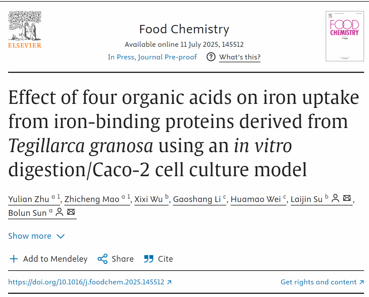 近日,海角社区 护理学专业本科二年级两位学生朱育涟和毛志城分别以第一作者和共同第一作者身份在营养学国际顶刊Food Chemistry(中科院一区TOP,IF=9.8)发表论著“Effect of four organic acids on iron uptake from iron-binding proteins derived from Tegillarca granosa using an in vitro digestion/Caco-2 cell culture model”。该论著由海角社区 近年来新引进的青年教师孙博伦博士指导。