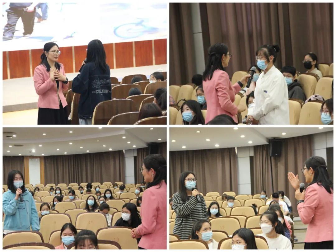 在师生互动环节,同学们踊跃提问,就护理专业发展的前景和护生需具备的素质技能等问题展开交流,张春梅对同学们的提问一一做了耐心解答。她勉励同学们树立远大理想、练就过硬本领,要让青春在祖国和人民最需要的地方绽放绚丽之花。