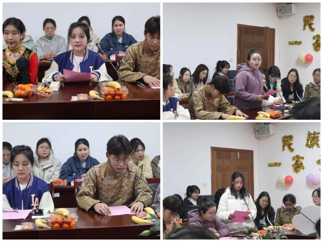 新疆、西藏地区少数民族文化的独特魅力也在茶话会上得到了充分展示。新疆同学拉孜依娜·卡马斯亚带来了冬不拉表演《阿代》,西藏达瓦普尺等七位同学表演藏语歌曲《雪域梦》,艺术团的同学们为大家带来了古典舞表演《山鬼》。同学们出色的展示让本就其乐融融的茶话会更添上了几分火热,大家欢聚一堂,共奏民族团结乐章。除此之外,现场还组织了丰富的游戏环节,本次活动就在师生们的欢声笑语中圆满结束。