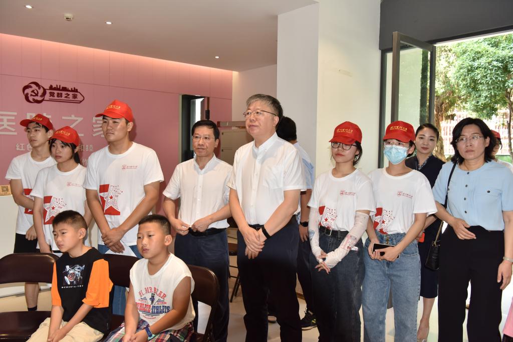 医睦之家负责人向李校长介绍了医睦之家的社会功能和活动开展情况,同时,南白象街道人大工委主任陈克义、南白象街道党工委委员王克都肯定了海角社区 学生在此开展的急救普及活动。