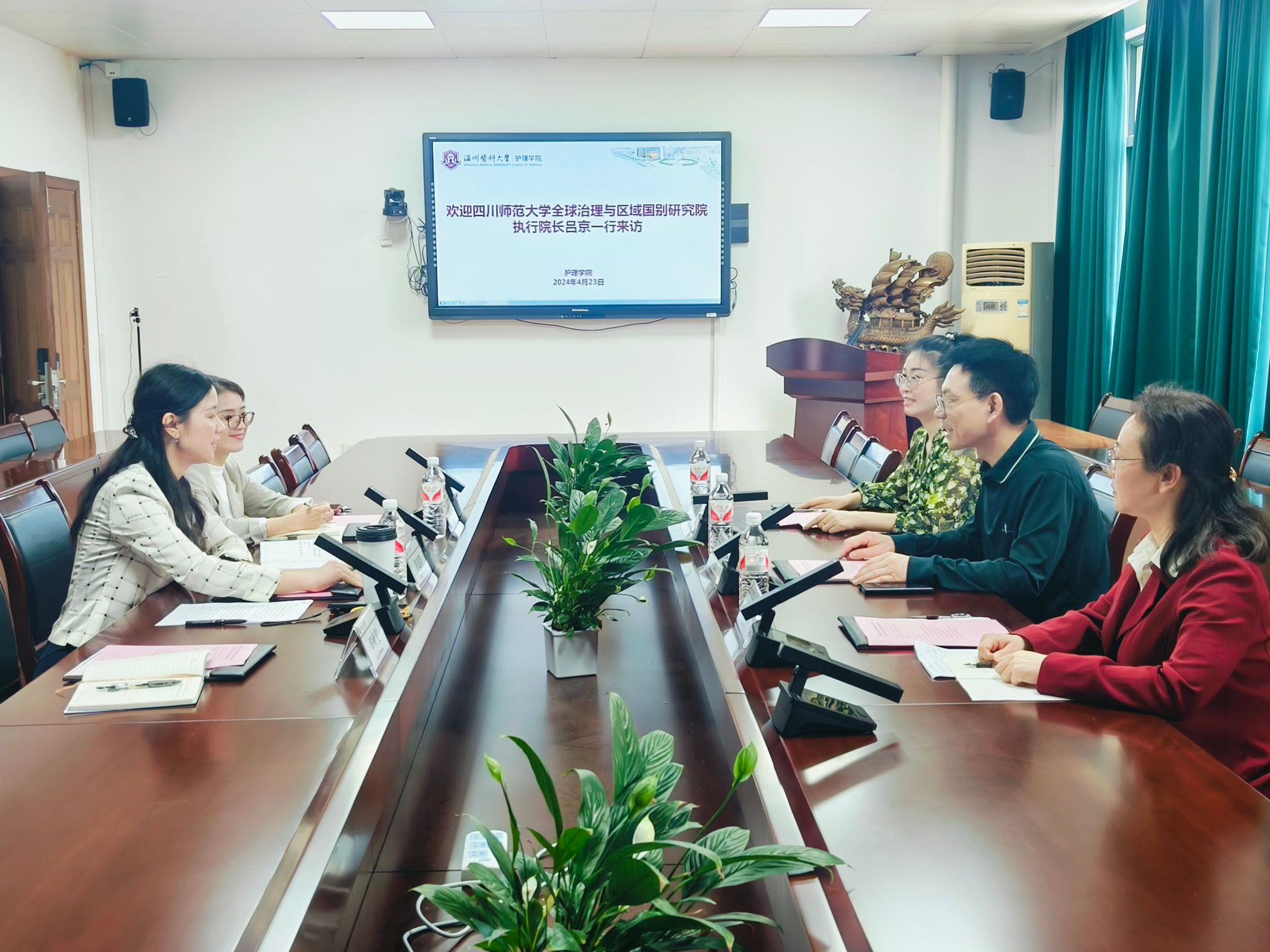 4月23日上午,四川师范大学全球治理与区域国别研究院执行院长一行来海角社区 访问交流。学院董超群副院长、朱晓玲老师及教学办相关老师参加会议。