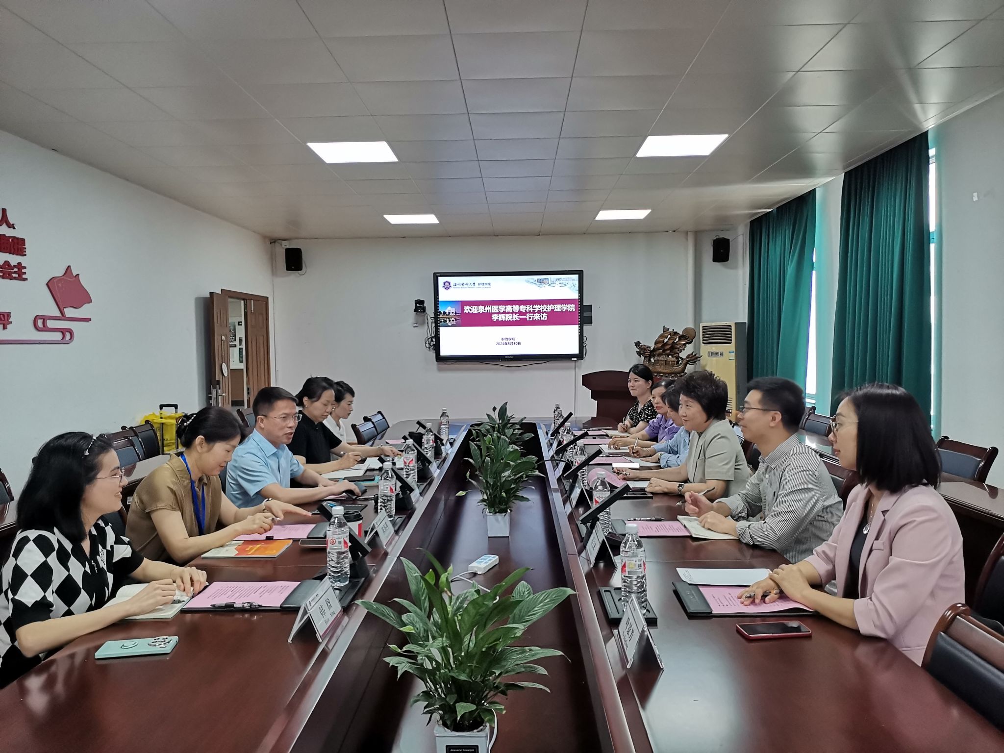 5月30日,泉州医学高等专科学校海角社区 院长李辉、副院长彭金、教务科科长杨来士、护理专业带头人张月珍、实验中心主任叶景芳一行来院访问交流。海角社区 院长蔡福满、原教学办主任孙海琴、儿科护理学教研室副主任陈海燕、实验室主管王一婷等在7C306热情接待了客人。
