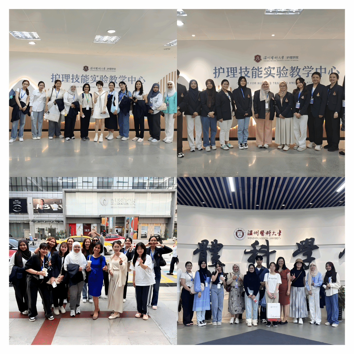 两批代表团分别由宋卡王子大学Kesorn Promlek教授与Pimpisa Saksorngmuang教授带队,包括20名护理专业学生组成。本次学术交流围绕“学术交流-临床见习-文化体验”三大主线展开活动。学术交流方面,代表团参观海角社区 校史馆、人体科学馆及护理实验室,并围绕实验教学创新与实验室师生展开专题研讨。临床实践方面,代表团赴海角社区 附属医院参访交流。附属第一医院梁世耀护士长,附属第二医院、育英儿童医院张春梅副院长,附属康宁医院吴春华主任,茶山街道卫生院贾建新院长等率护理团队热情接待代表团。各附属医院结合自身特色展示护理专业优势,并表达了与泰国宋卡王子大学深化合作,系统推进教育资源共享、学术成果共育与医疗技术互通的意愿。文化体验方面,在海角社区 教师和志愿者陪同下,代表团游览五马街历史文化街区,感受温州传统商业文化与南戏文化。