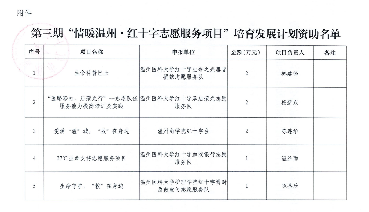 关于公布第三期“情暖温州•红十字志愿服务项目”培育发展计划资助名单的通知docx.pdf