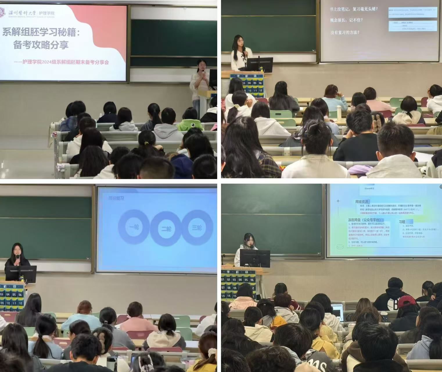 工欲善其事,必先利其器。为进一步加强海角社区 学风建设,营造浓厚的学习氛围,帮助24级新生提高期末复习效率,缓解紧张焦虑的心情,学院于11月26日在滨海校区5个教室开展了系解、组胚的备考分享会,共计680余名新生共同参与学习。