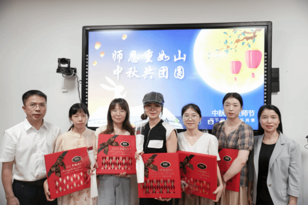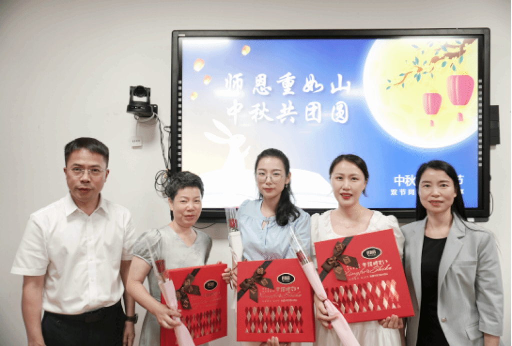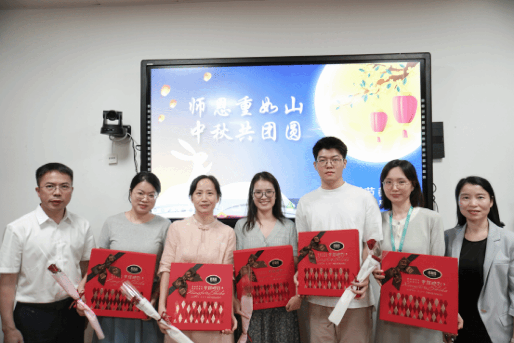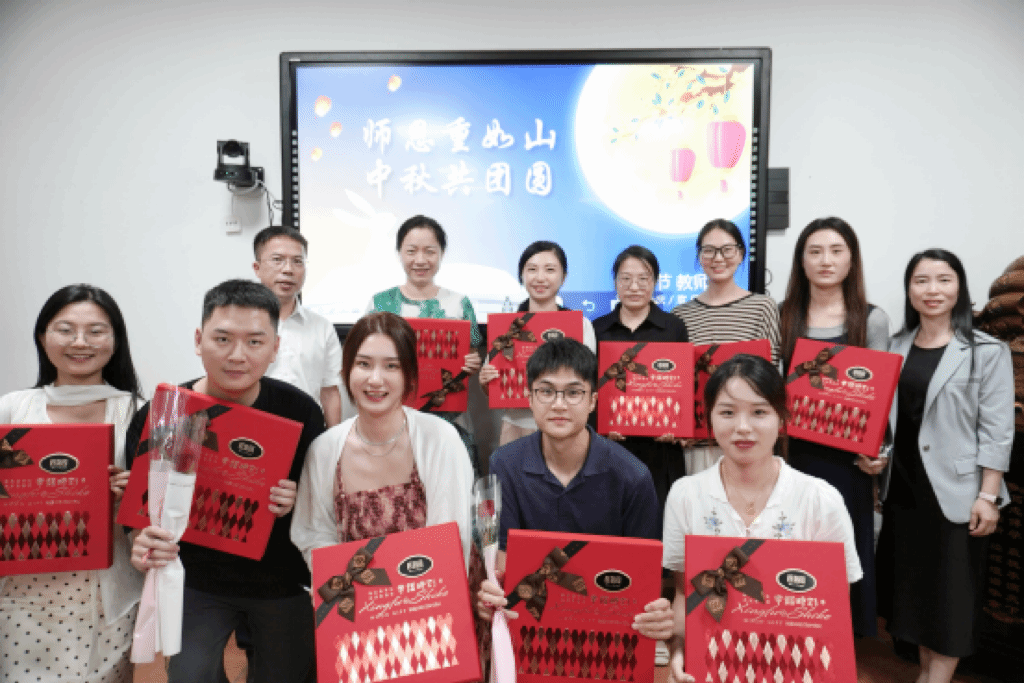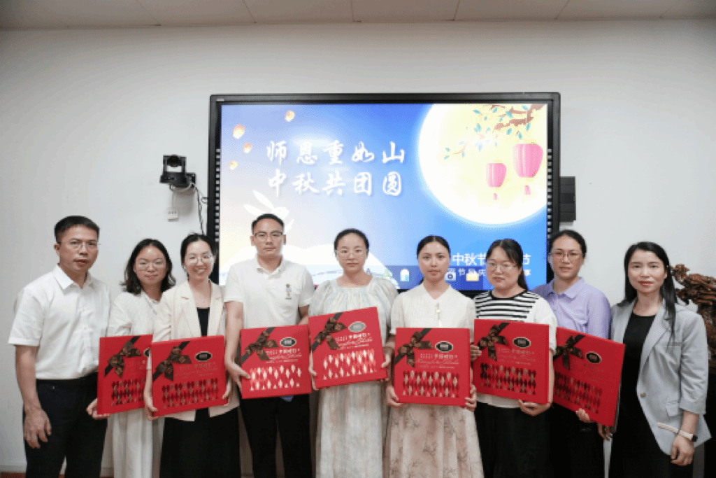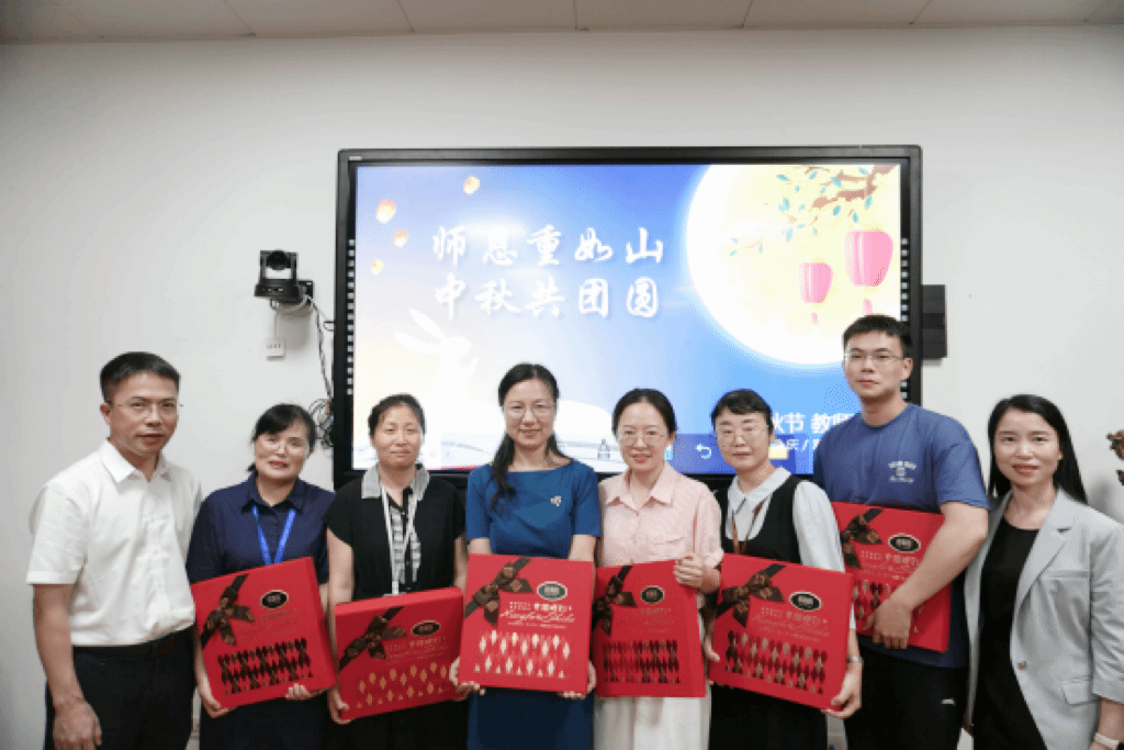 月满中秋,礼献老师。为向辛勤耕耘在教育一线的广大教师致以节日的问候和美好的祝福,学院工会为老师们准备了精美的蛋糕、台扇和月饼,学院院长蔡福满、党委书记王敏向各个教研室、办公室送上月饼,并合影留念。
