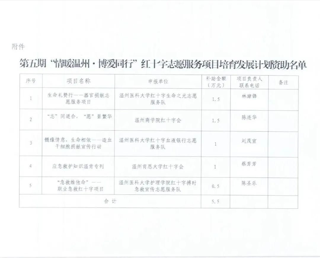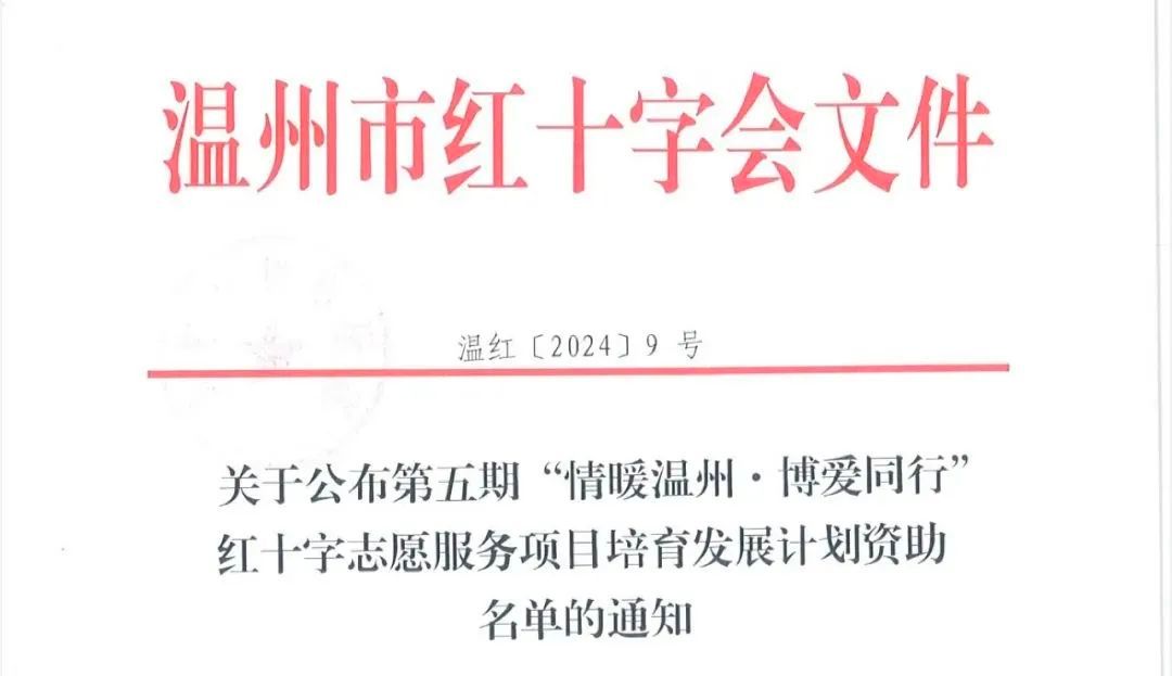 据悉,本次温州市红十字会第五期“情暖温州·博爱同行”红十字志愿服务项目发展计划特别聚焦于品牌打造与项目提质扩面,旨在通过高校这一充满活力与创新力的平台,进一步深化红十字志愿服务精神,推动温州市红十字志愿服务迈向新的高度。本次资助计划面向全市高校进行项目申报,最终共遴选出5个卓越项目。