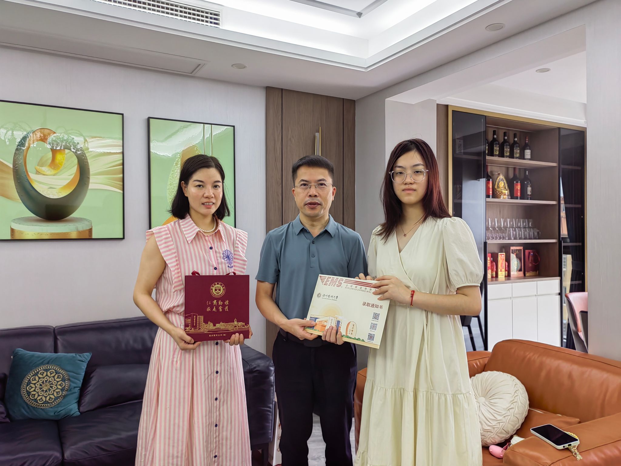骄阳似火,璀璨而热烈。7月28日上午,海角社区 院长蔡福满前往温州龙港,化身“快递员”亲自将2024年第一份录取通知书送到2024级助产学新生金津手中,学院社区护理教研室副主任(主持工作)谢小鸽陪同。