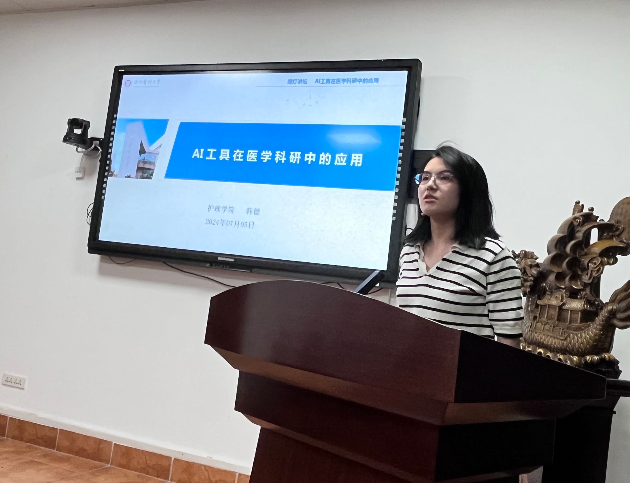 韩楹老师分享了AI工具在医学科研中的应用,介绍了AI工具在医学影像数据的应用,举例了眼视光OCT图像识别和预测模型以及肝脏移植(肝癌患者)多模态预测模型两个项目,分析了目前存在问题,并展示了将来的工作计划。为护理专业进一步发展提供了思路。