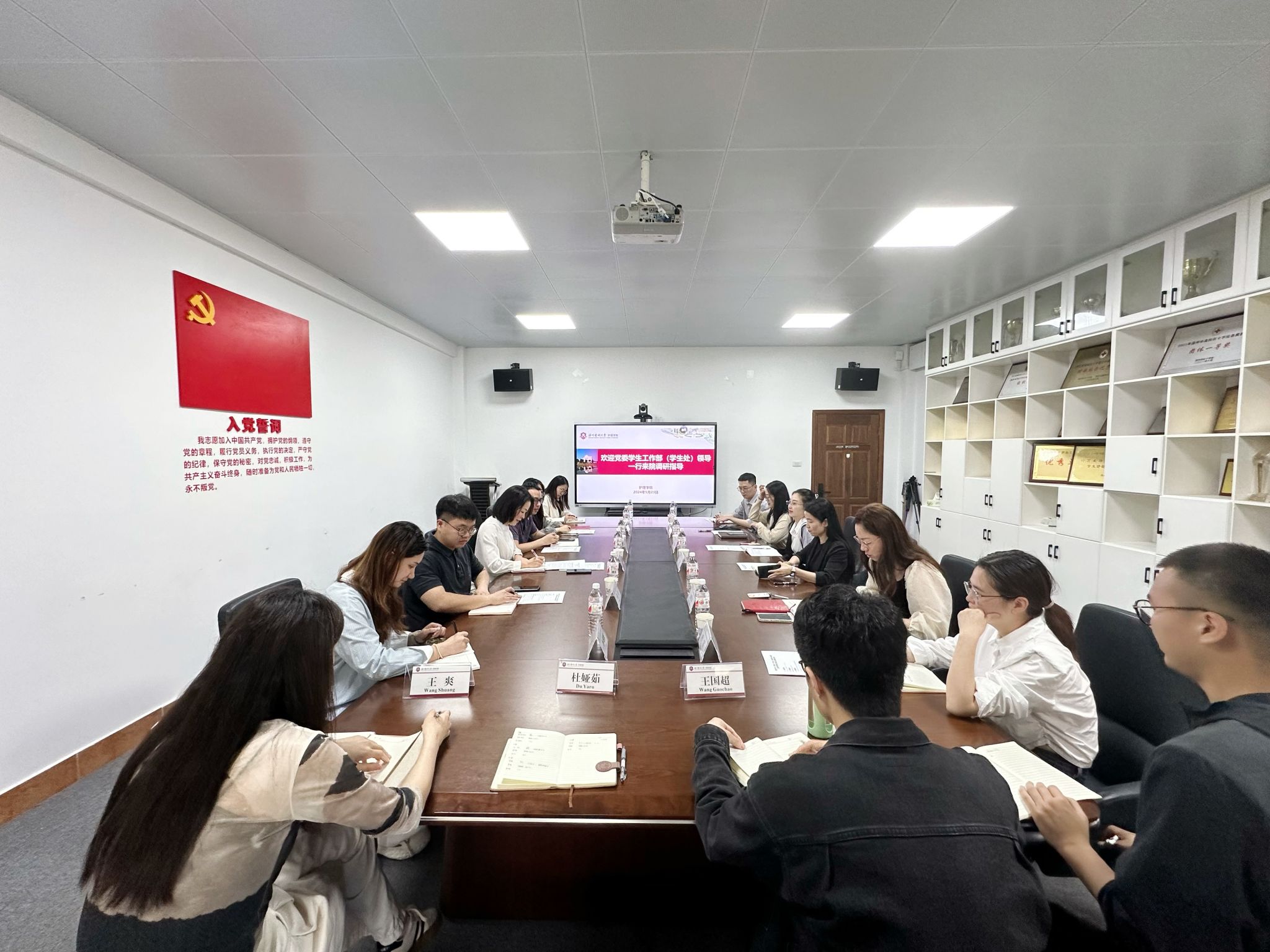 5月23日,校党委学工部部长吴蕾蕾、校党委学工部副部长叶圣一行到海角社区 开展就业育人促进工程专题调研,学院党委书记王敏、学院党委副书记金晓童以及海角社区 全体辅导员参会。
