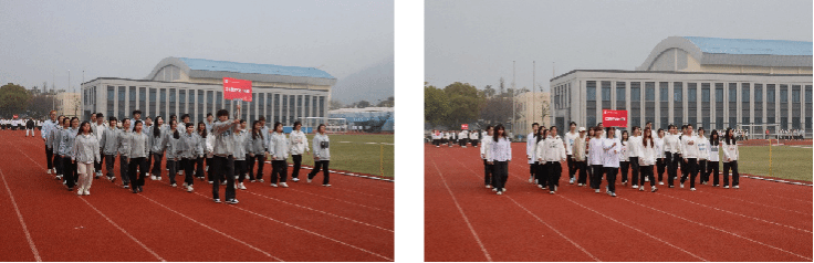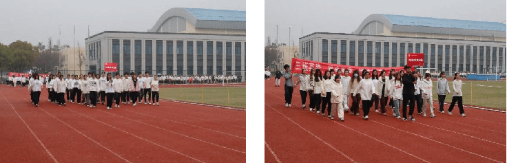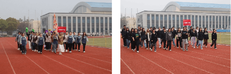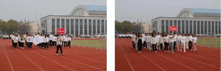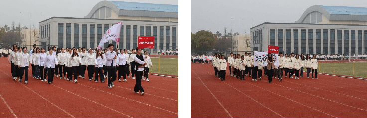 由23级所有新生班级和部分22级班级组成的比赛团体,在赛事开始前的入场式表演中,步伐整齐,口号嘹亮,尽情挥洒青春热血,充分展露了团体风采。