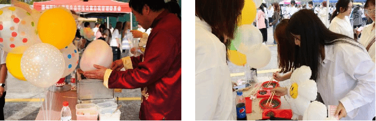 同时进行着的,还有充满童趣的游园会。现场精心布置,组织了夹弹珠、颠乒乓、套圈等一系列小游戏,师生们沉浸在欢乐的气氛里,在游戏的过程中完全释放身心,得到了心灵上的治愈。
