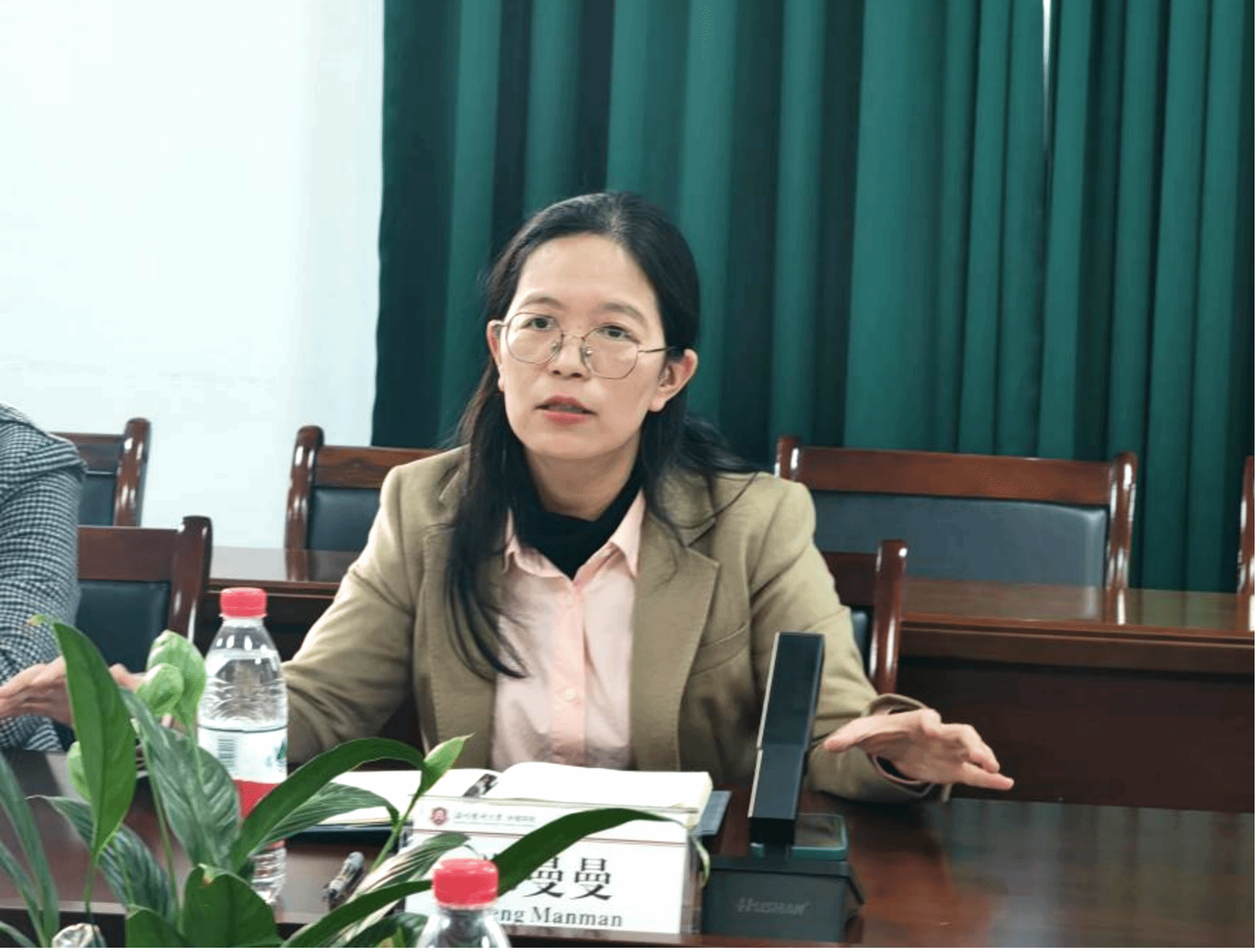 首先,学院院长蔡福满对郑曼曼书记一行的到来表示热烈的欢迎,向党委研工部(研究生院)对海角社区 一直以来的支持和指导表示感谢。他表示,学院接下来会在培养博士研究生、提升导师水平、优化专硕培养方案和规范化管理上下功夫。董超群副院长从学院研究生教育概况、满意度提升、学位论文质量、培养基地建设等方面作汇报。