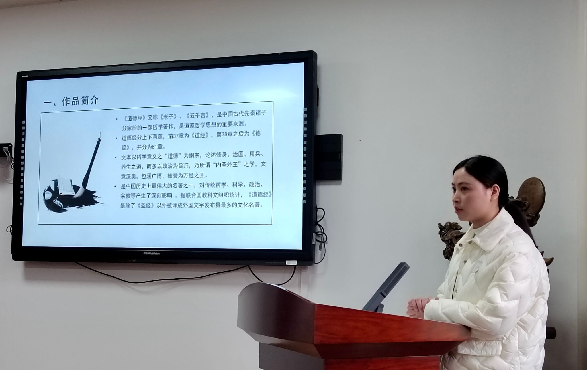 符莉敏老师则为我们带来了《道德经》的精彩解读。她以深入浅出的方式,引领我们领略了这部被誉为“万经之王”的经典之作的奥妙与魅力。通过对于《道德经》的解读,符莉敏老师为我们揭示了道家思想的深邃与博大,以及其中蕴含的独特智慧。她的讲解富有诗意,引人入胜,使我们对于道家文化有了全新的收获。