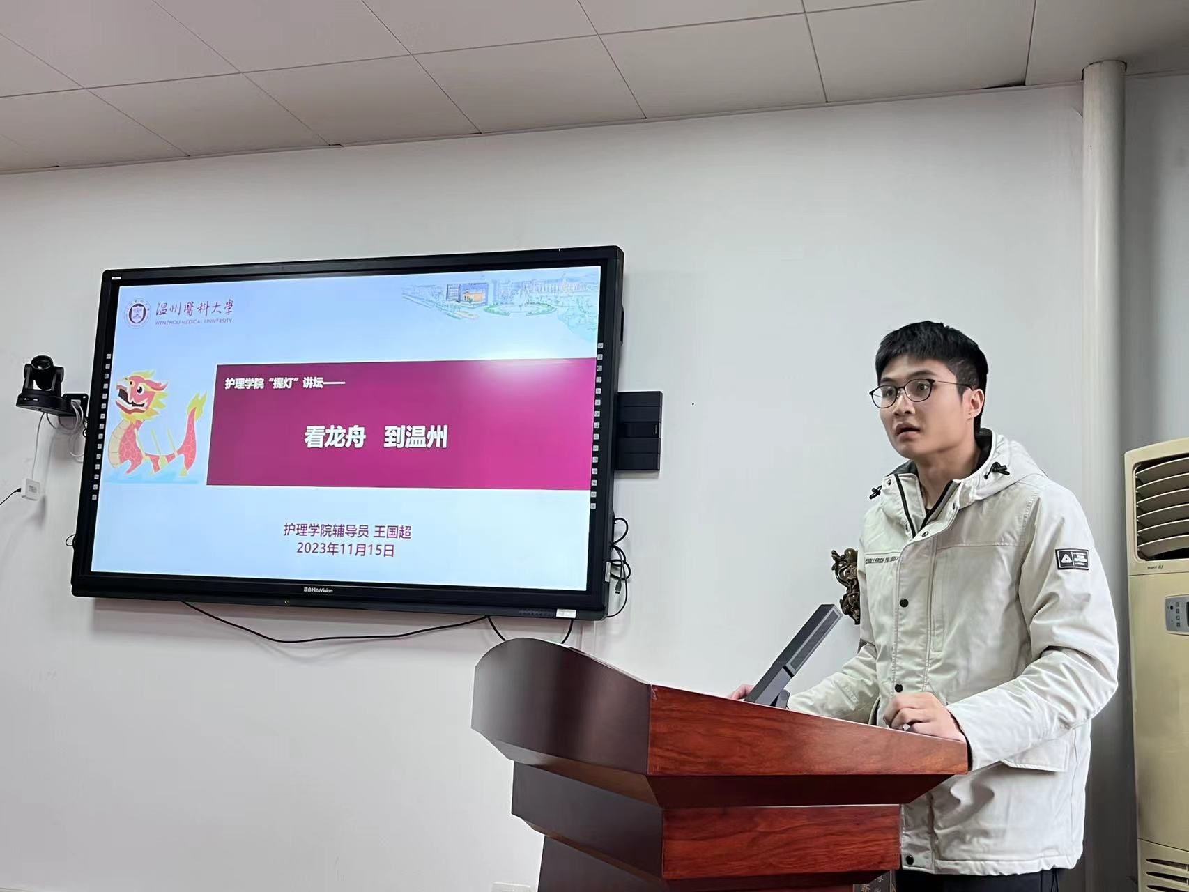 接下来,王国超老师分享了关于中国龙舟文化的独到见解。他从看龙舟到温州,再到温州借“舟”出海,让我们对“同舟共济、奋勇争先”的龙舟精神与对应“特别能吃苦、特别能创业,敢为人先”的温州人精神有了更深入的了解。他通过讲述走向世界的温州龙舟,展示了中国龙舟的特色与内涵,让我们重新思考温州传统龙舟文化的价值和意义。