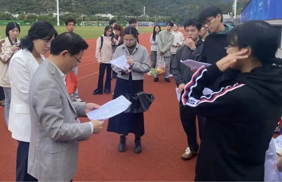 为深入了解海角社区 第四十九届运动会准备情况,确保运动会赛前训练平稳有序地开展和推进,10月20日下午,海角社区 党委书记李旭东、院党委副书记陈素云及学院辅导员老师前往操场慰问训练中的运动员们。