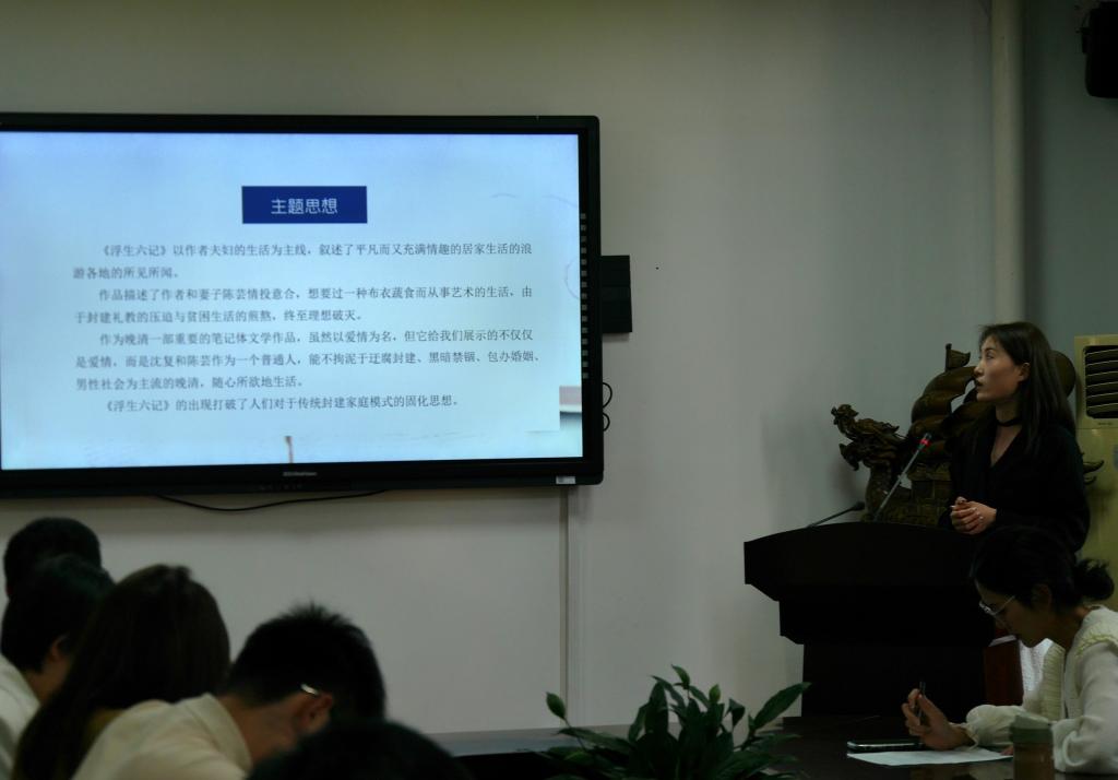 王爽老师向我们介绍了《浮生六记》,大家被作者夫妇平凡而又充满情趣的居家生活和浪游各地的所见所闻所深深吸引,同时又为他们受封建礼教的压迫与贫困生活的煎熬而至理想破灭的结局深感惋惜。这本书以真言述真情,不刻意造作,达“乐而不淫、哀而不伤”的境界。或许这也是它流传至今、成为经典的原因。