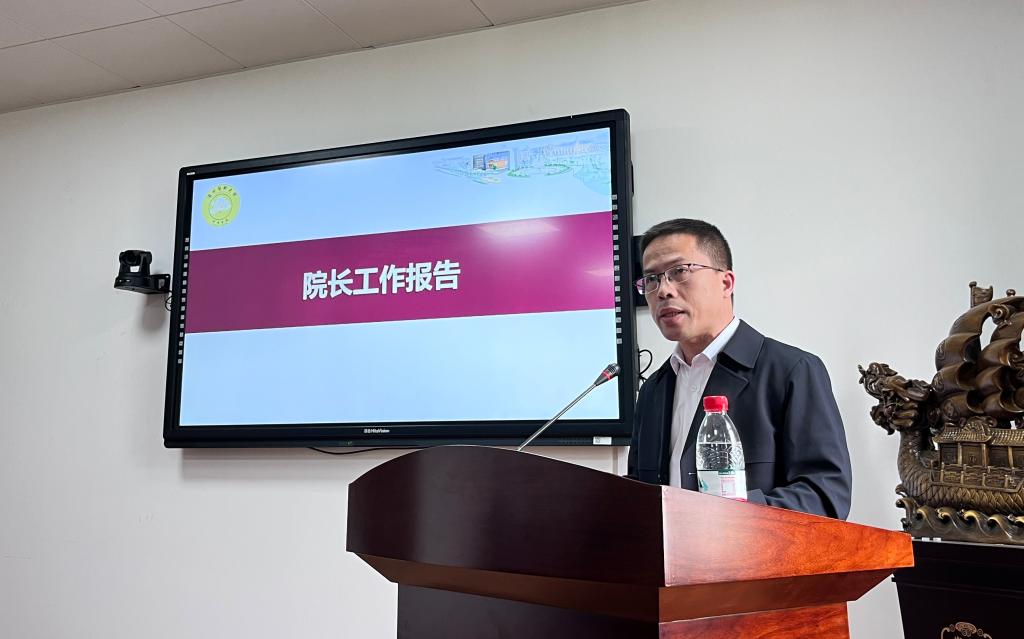 院长蔡福满作题为《打造一流专业 跻身第一方阵》的工作报告,报告回顾了学院一年来在党的建设、人才引育、学科建设、对外交流、社会服务等方面取得的成绩,同时指出学院发展中的问题和不足。并从党建领新、改革立新、开放拓新、文化育新、治理革新5个方面明确2023年的目标要求和重点工作。