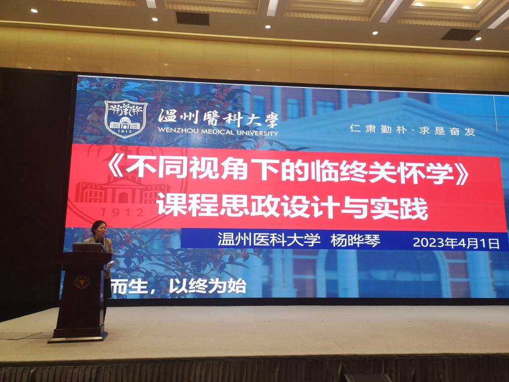 杨晔琴老师在浙江省高校课程思政教学活动总结表彰会中分享了《不同视角下的临终关怀学》课程思政设计与实践。