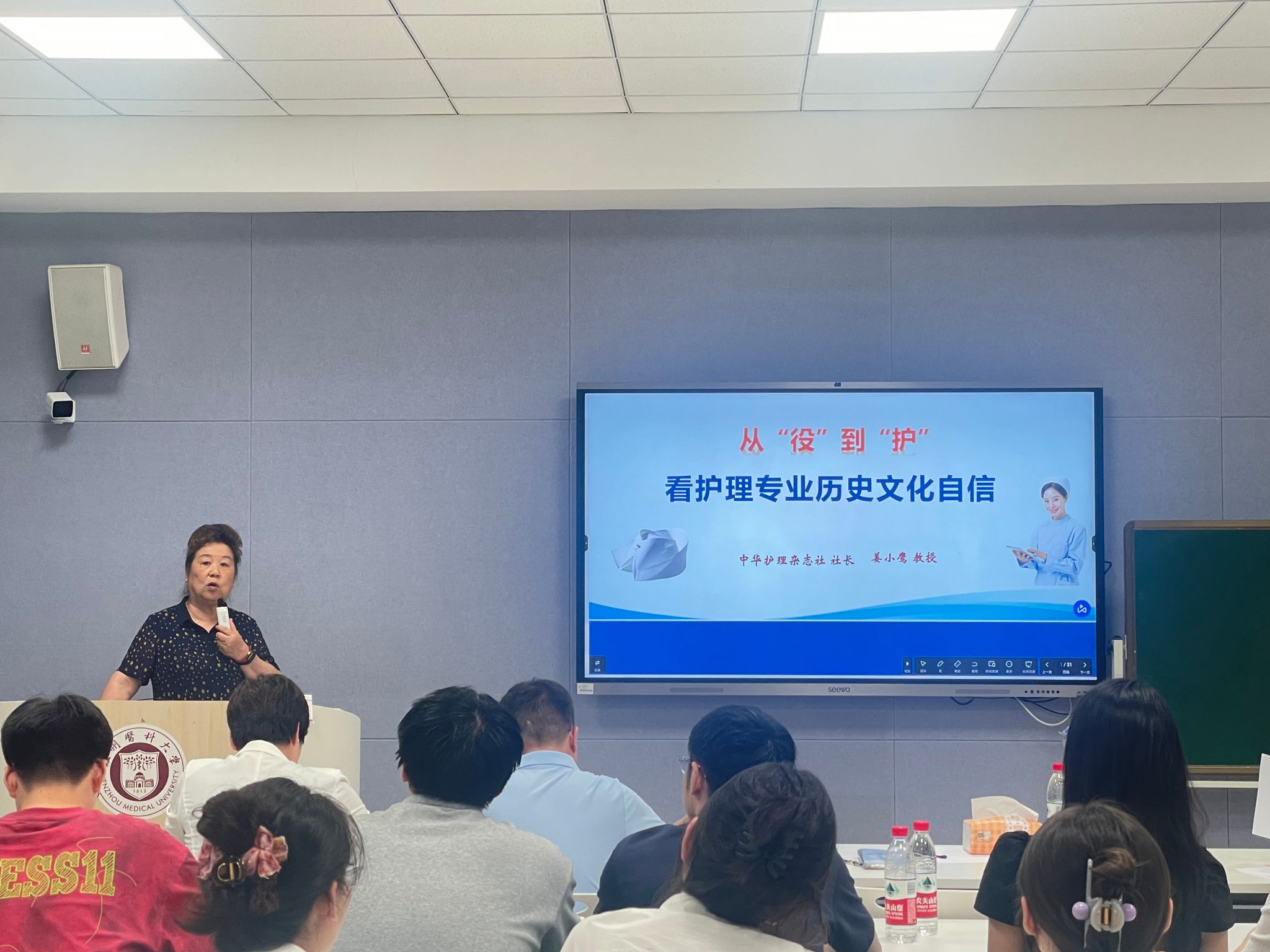 随后,姜小鹰教授围绕护理专业历史文化自信与他信展开探讨,着重强调文化自信对护理高质量发展的重要意义。她提出,护理文化自信是推动专业发展的重要力量,深入理解护理历史与文化,能有效增强护理人员的专业认同与自豪感。同时,要突出护理教育的关键作用,为行业未来发展筑牢根基。