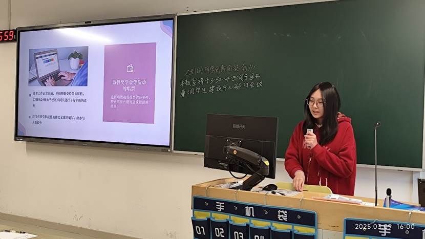 为了推动廉洁教育的相关活动在下半年的顺利举行,2025年3月9日,廉润学生中心部长及小干事们在海角社区 滨海校区至理楼2122展开了期初大会。
