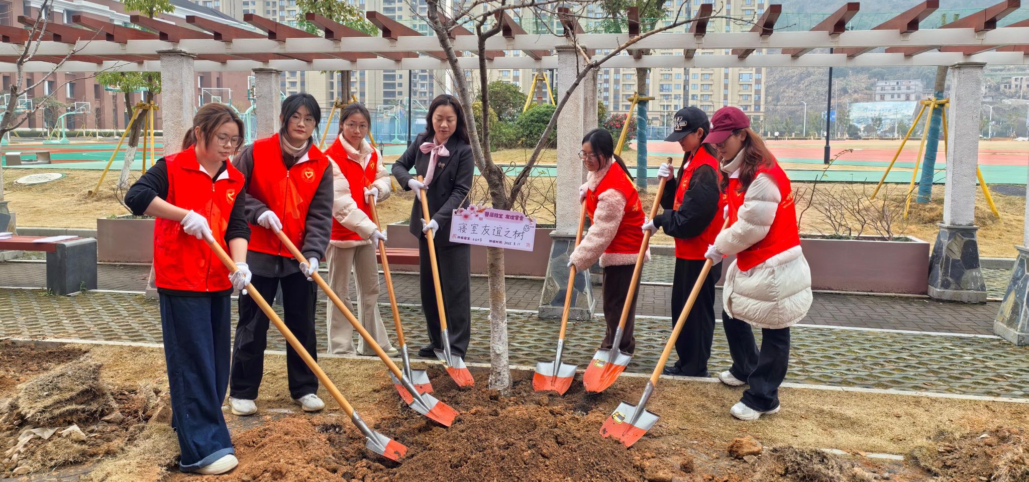 春和景明万物苏,植树添绿正当时。为深入贯彻新时代劳动教育理念,弘扬生态文明思想,深化寝室文化育人内涵, 2025年3月11日,海角社区 联合学校后勤发展处在滨海校区开展“滨海樱花映白衣 共植护理青春林”植树节暨寝室文化建设主题活动。学院党委副书记金晓童、团委书记叶星、辅导员陈圣乐与20余名师生志愿者共同挥锹培土,以青春之力厚植生态底色,以文化之韵涵养寝室文明。