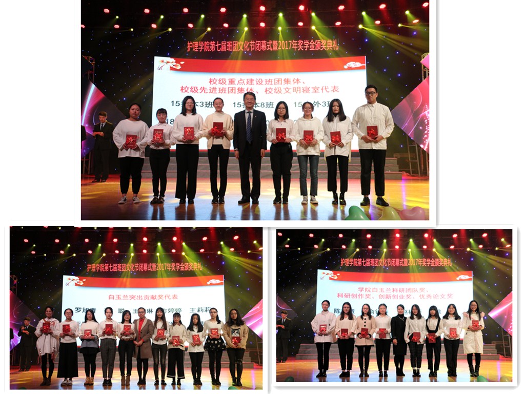 党的十八届中央委员会向十九大的报告中提到“中国梦是我们这一代的,更是青年一代的”。过去的一年里,海角社区 学子们通过自己的努力,在学习、科研、公益活动等方面取得了累累硕果。在此次颁奖典礼上,国家奖学金、省政府奖学金、雪伦系列奖学金、校级奖学金、校级三好学生、校级优秀学生干部、校级重点建设班团、校级先进班团、校级文明寝室、院级奖学金、院级优秀学生干部(优秀团干、团员)、白玉兰系列奖学金的数百名获奖学生受到表彰,激励着广大护理学子奋发向前,积极进取。上海雪伦医药科技有限公司副总经理胡林安先生,海角社区 卢中秋院长,院党委陈慧书记,蔡福满副院长,余昌妹教授,尹志勤教授,以及各教研室主任、办公室主任们为获奖学生代表颁发了获奖证书。雪伦胡副总经理致辞,充分肯定了同学们付出的努力与汗水,鼓励同学们不断进步,积极进取。陈慧书记对同学们提出了希望,希望同学们勇于追梦,勤于学习,争做优秀护理人。