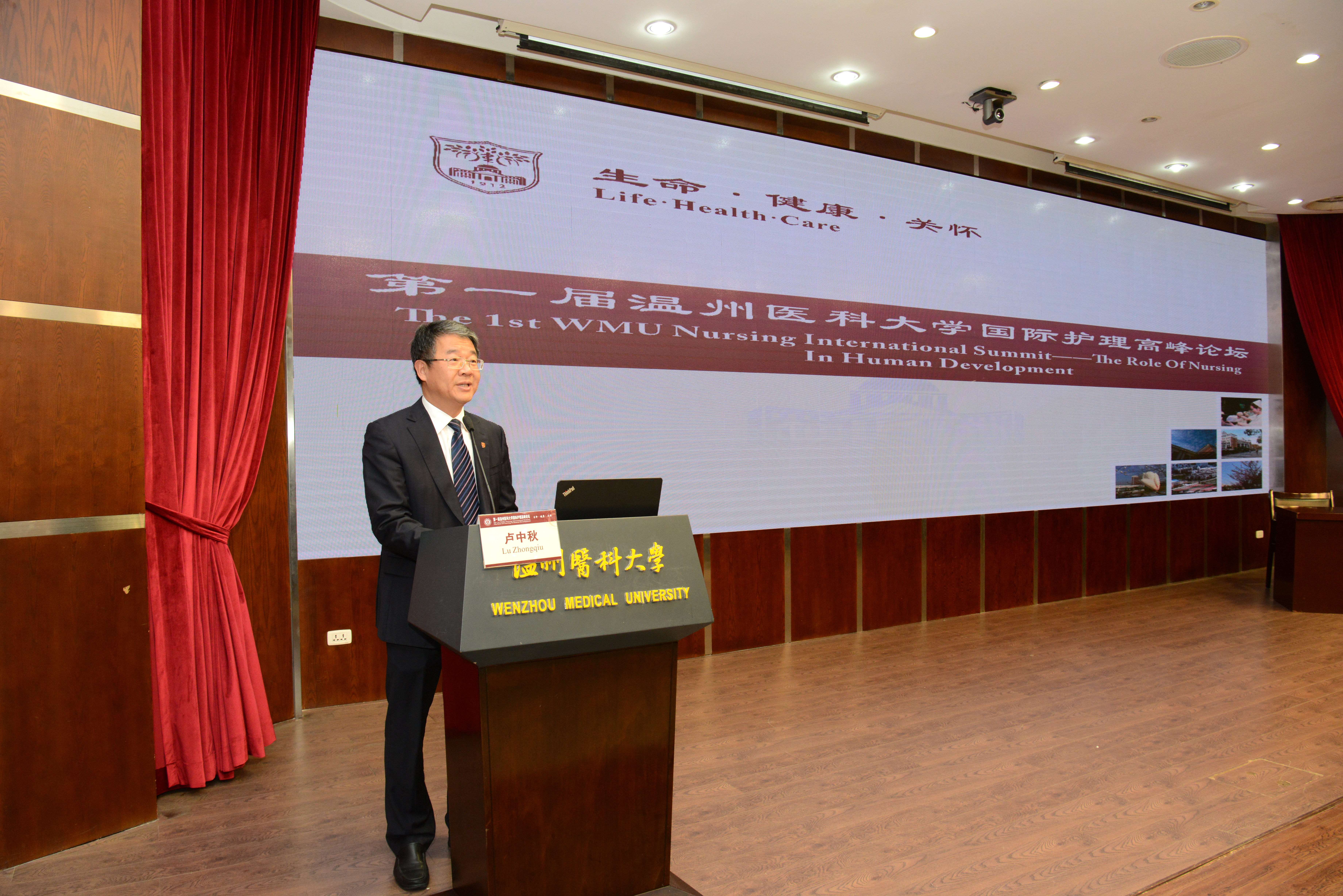 2017年11月25-26日,第一届海角社区 国际护理高峰论坛在海角社区 茶山校区旭光厅隆重召开。此次论坛盛况空前,共有来自全国20多个省、直辖市以及自治区共85家单位约400余名高校护理专业教师以及临床护理人员参与了此次盛会。海角社区 曹建明副校长莅临会场并代表学校致欢迎词。