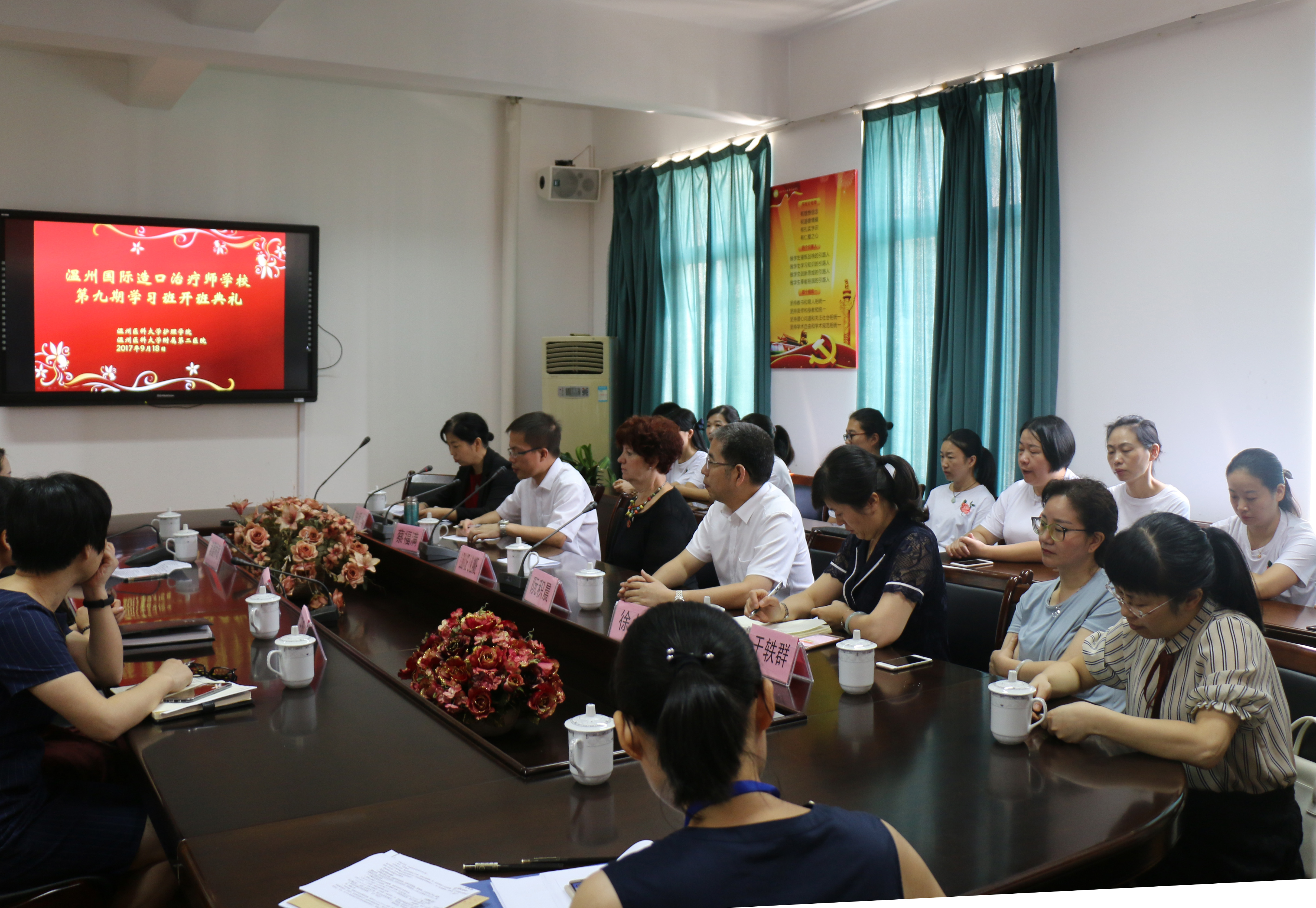 9月18日上午,温州国际造口治疗师学校第九期学习班开班典礼在海角社区 会议室举行,世界造口治疗师协会前主席路易丝女士,海角社区 副院长蔡福满,附属第二医院副院长阮积晨,温州国际造口治疗师学校副校长陈爱华,及附属第一医院、附属第二医院护理部主任,授课