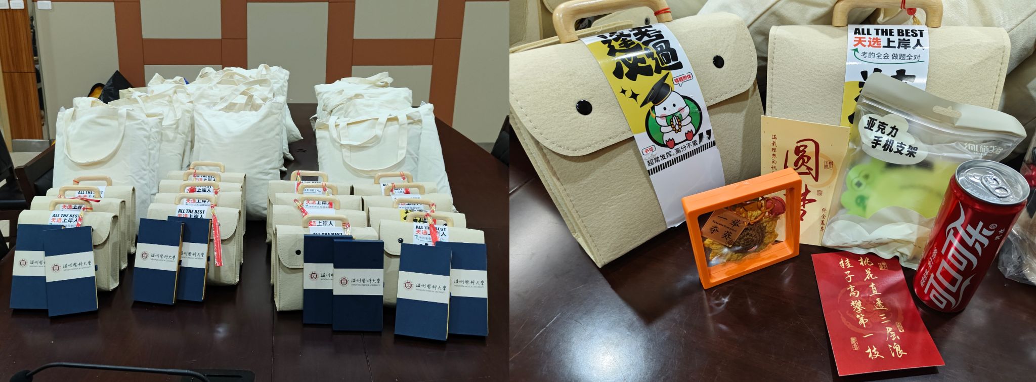 带着满满的祝福与期望,辅导员老师们与同学们促膝长谈,详细询问了同学们的备考进度、遇到的困难以及心理状态,并给予了针对性的指导和建议。在交流过程中,辅导员们鼓励同学们要保持积极的心态,合理安排时间,在最后冲刺阶段安心专注地备考。在送上考研大礼包的同时,辅导员老师们还为同学们送上了温馨的寄语,鼓励同学们要坚定信心,相信自己能够克服困难,取得优异的成绩。老师们还强调了考研心态的重要性,希望同学们能够保持平和的心态,积极面对考试压力。