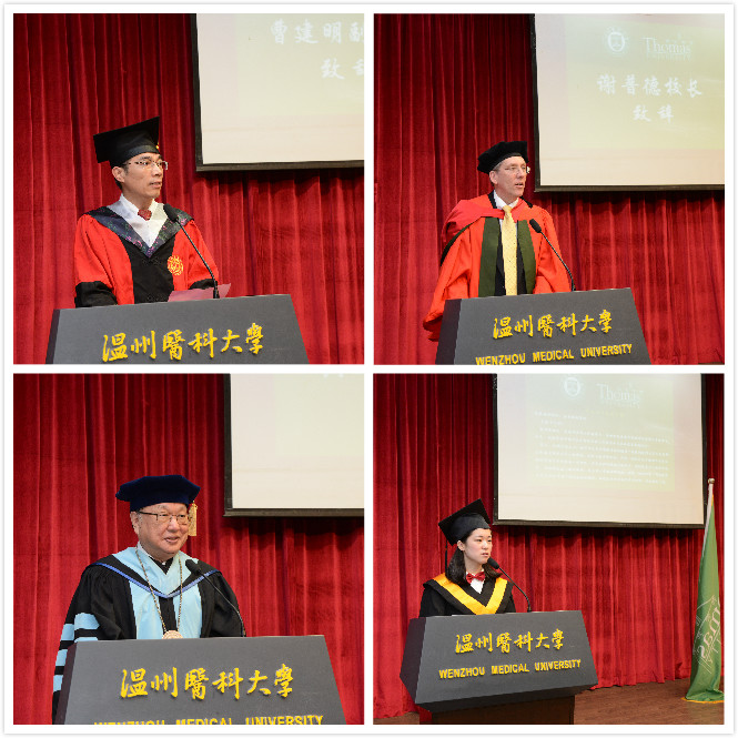 典礼上,曹建明、詹姆斯·谢普德和黄天中先后致辞,对全体毕业生顺利完成学业表示祝贺,并希望他们在教育国际化、“一带一路”建设的大背景下,发挥中外护理学专业优势,肩负起救死扶伤、回馈社会的责任,开创人生新篇章。毕业生代表管娅琦发表感言,表达了对母校和老师的感恩之情以及对同学的深厚友谊。
