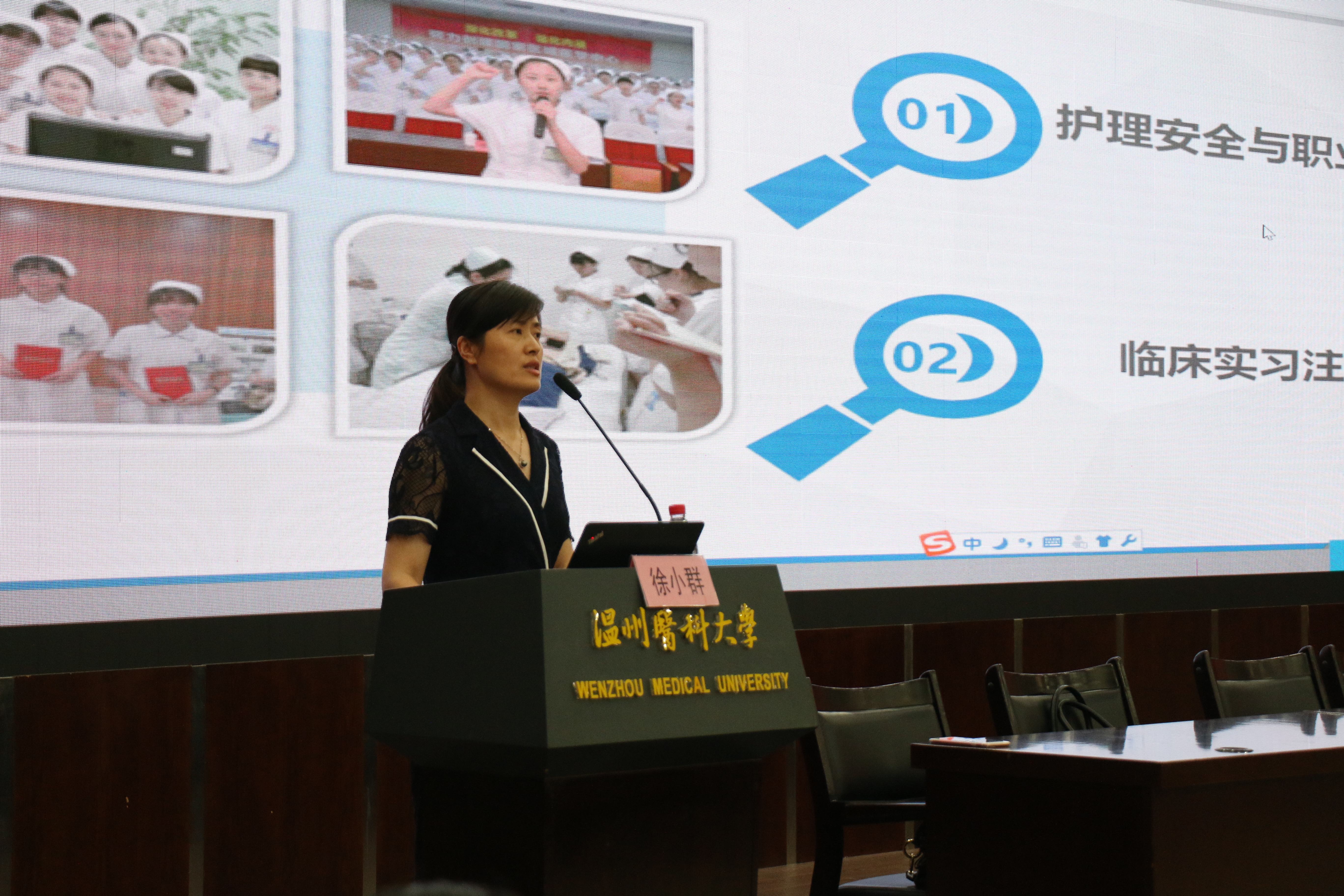 徐小群结合多年的临床工作经验,着重强调了护理安全与职业自我防护以及临床实习应注意的事项。她希望实习生能有自我安全防护的意识,秉持小心谨慎的态度做好护理工作。并指出,在实习时需要抱有高度的责任感,除了精湛娴熟的护理操作,还要遵守规章制度,严格执行各项技术操作,不断的学习,不断的成长。