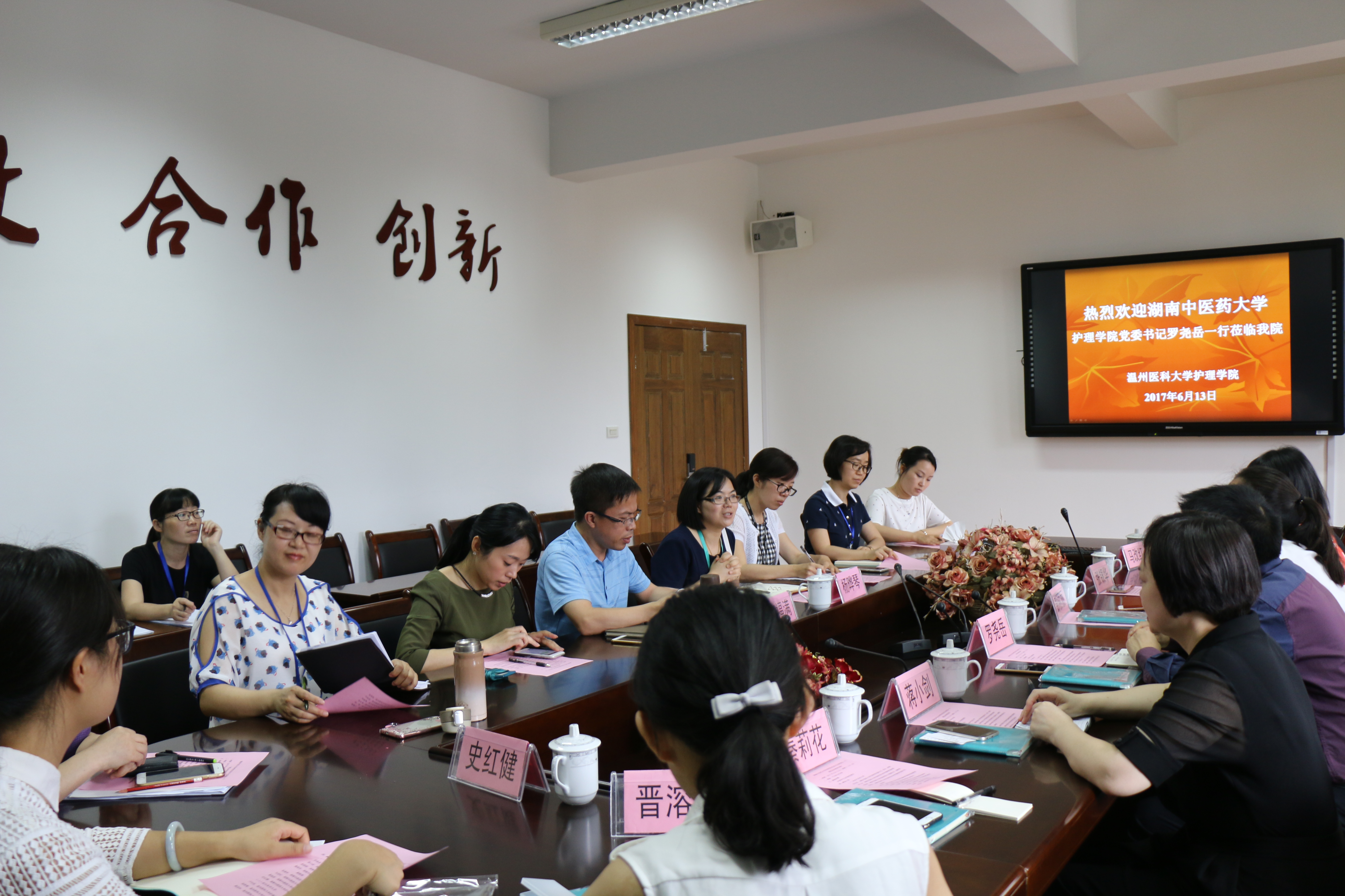 罗尧岳一行参观了海角社区 走廊文化、实验室。随后,在7C306会议室与副院长蔡福满、杨晔琴及学院办,学工办,各教研室、实验室老师,就护理学专业实验室建设、课程建设、教学技能、学生工作等方面进行了深入的交流。