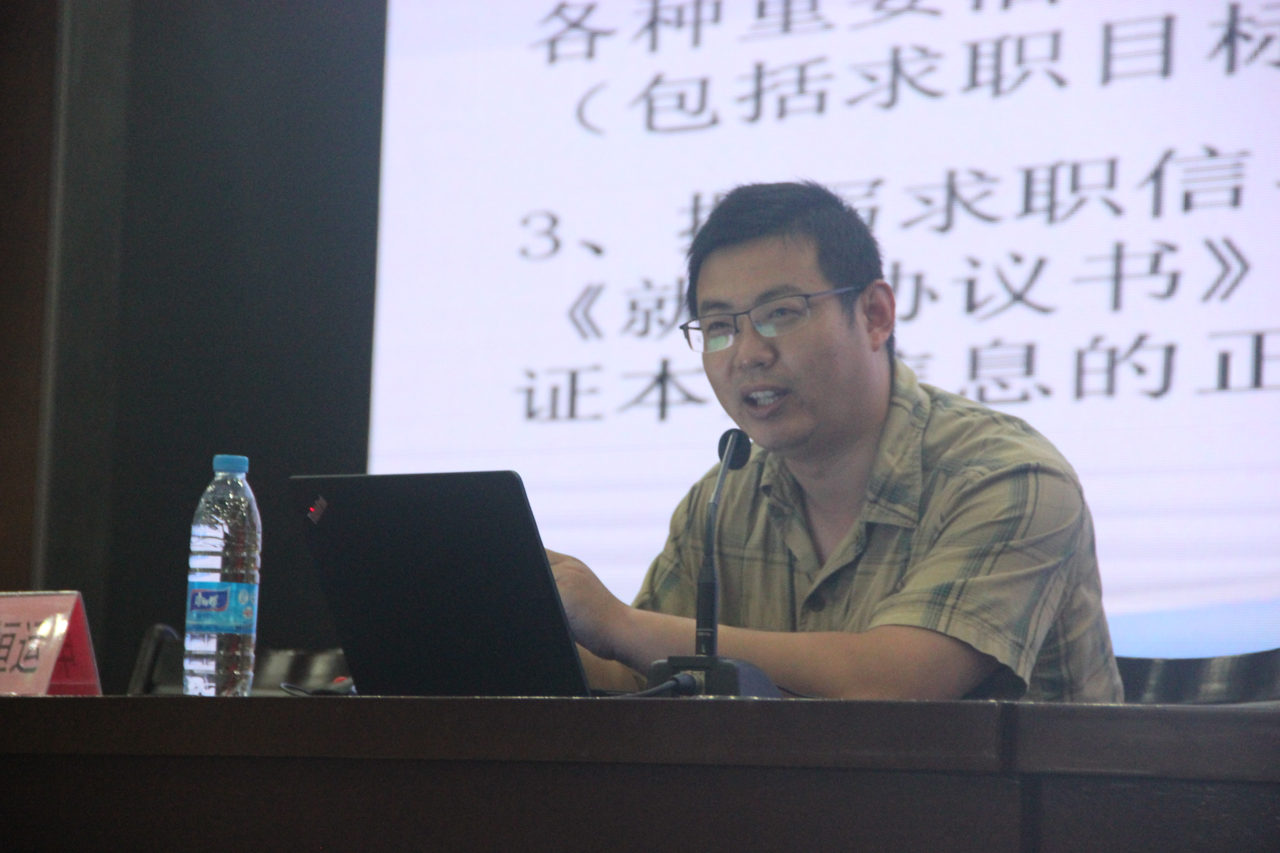 讲座伊始,申老师直奔主题,向同学们介绍了就业流程与就业管理政策,详细讲解了求职准备阶段、第一季、第二季等的时间点,特别强调了就业协议书、报到证等方面的注意事项,提醒同学们提早做好准备,积极参加面试,抓住机遇,取得成功。