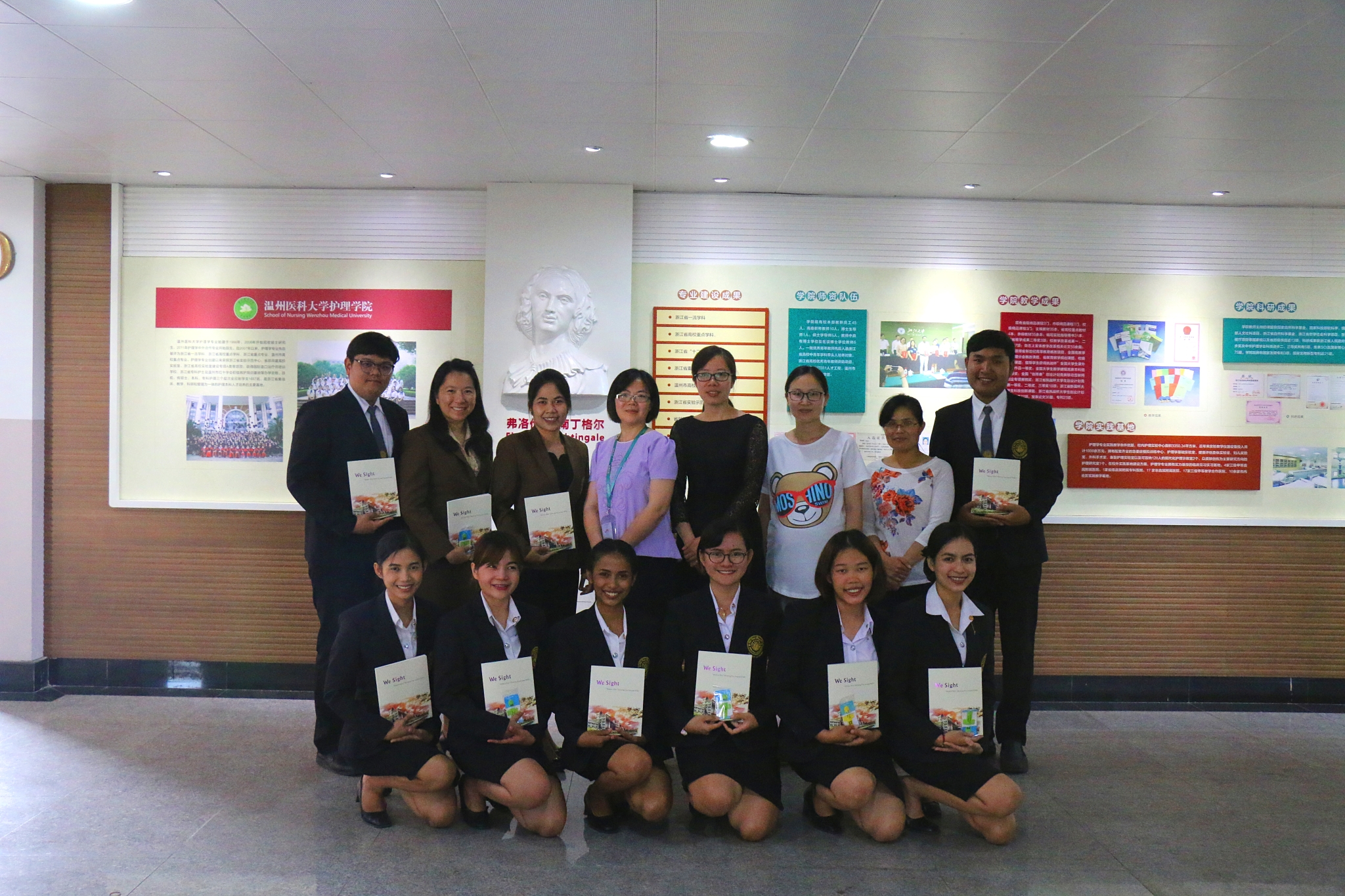 5月10-23日,泰国东方大学海角社区 教师Pornpan Srisopa、Chonticha Chantakeeree率8位护理专业本科生来我校交流访问。访问期间,东方大学代表团一行参观了学校人体科学馆、海角社区 实验中心,以及附属第一医院、附属第二医院&育英儿童医院、海角社区 教学实习点——温州市第七人民医院和温州市安孝老年护理中心等机构,并与学院各个教研室的老师就护理课程的设置、学分分配、实践教学等方面进行了深入交流。此外,Pornpan Srisopa、Chonticha Chantakeeree两位老师还为海角社区 教师做了关于泰国老年护理和泰国大学生心理健康相关研究的专题讲座,并与现场老师就两国老年群体的护理、老年健康领域的研究以及大学生心理健康领域研究进行了交流。