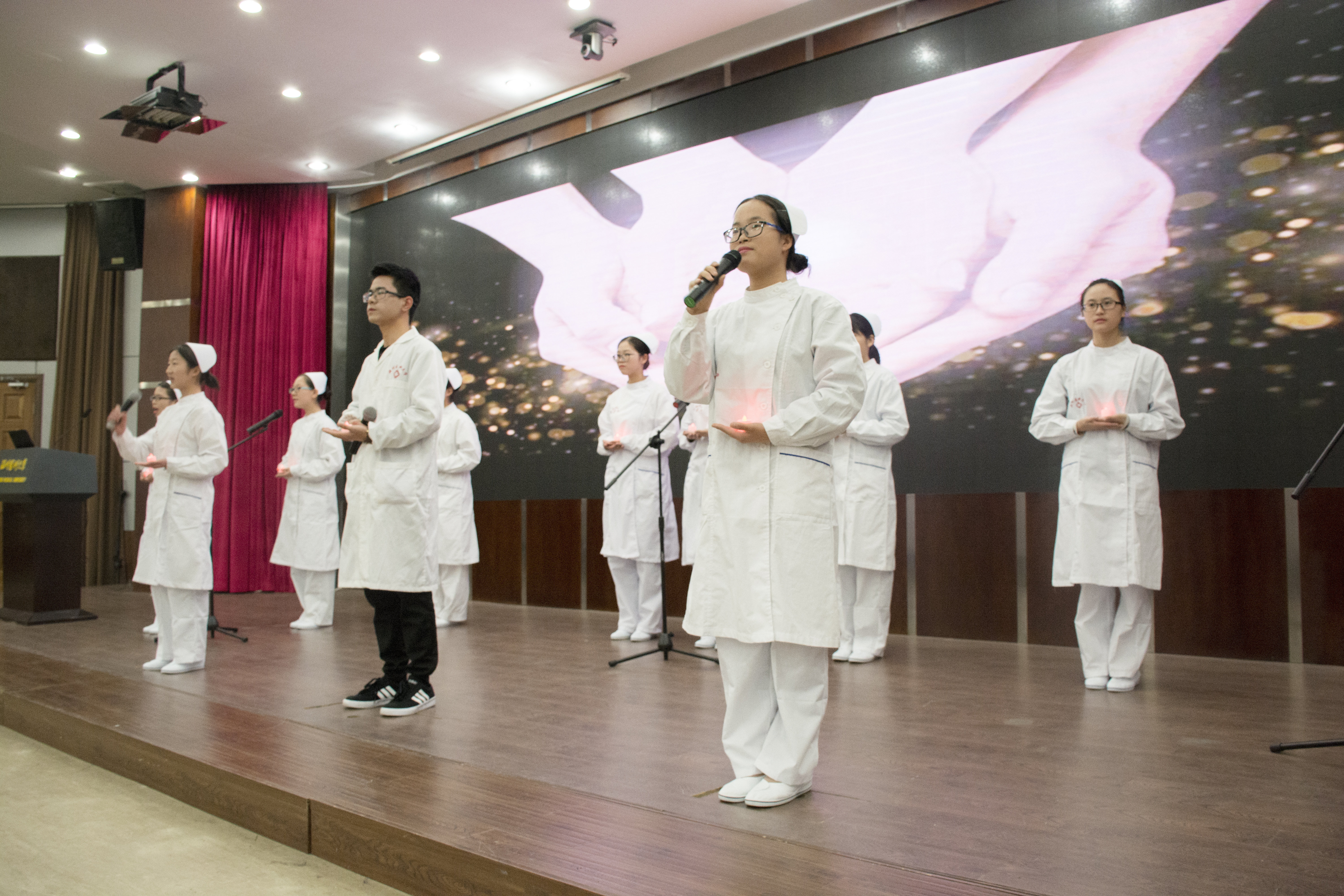 “明”篇开始,护生们的诗朗诵《护士梦 青春梦 中国梦》传递出对梦想的坚守、对信念的执着,“我们作为护士要坚守职责,捍卫中国永远健康”,他们的誓言回荡在旭光厅的每个角落。