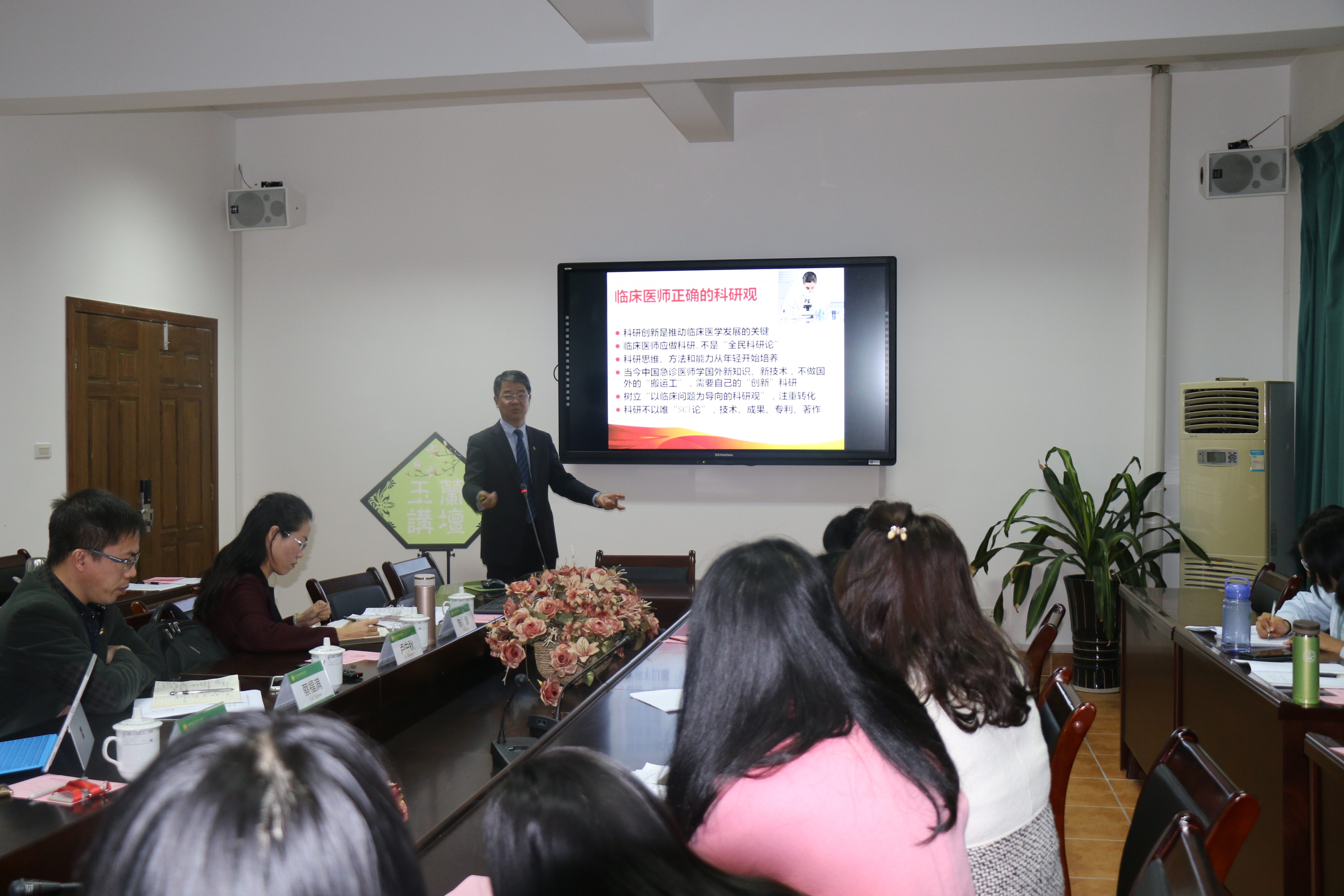会上,卢中秋院长以“优秀双师型教师的成长之路”为题,就如何平衡教学、科研和临床关系做讲座,指出临床医学科研是推动现代临床医学发展的关键,并结合团队成员历经18年潜心临床工作和科学研究创伤弧菌的例子,提出教师做科研要“通过找短板、发现导向问题、总结整改措施”最终凝练学科发展方向,要树立正确的科研观,推动护教研一体化发展。