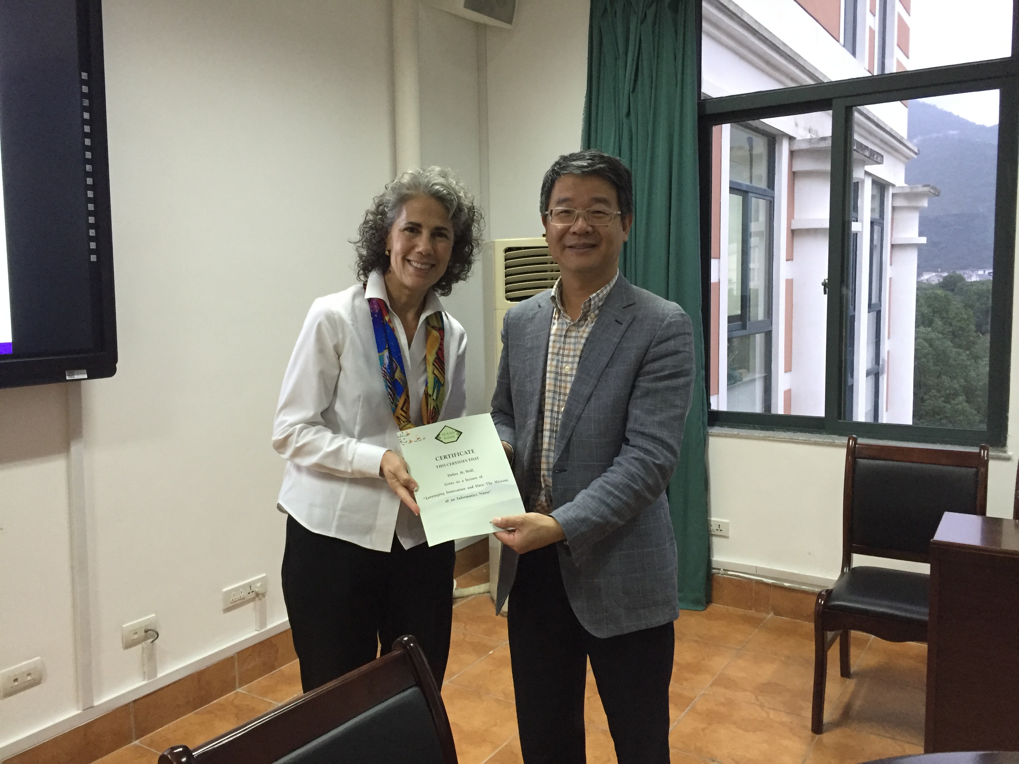 Wolf博士来访期间,双方就两校联合培养护理学专业硕士和博士研究生项目进行了初步的探讨。Wolf博士还为海角社区 师生做了题为“Leveraging Innovation and Data: The Mission of an Informatics Nurse”的讲座,其带来的许多国际前沿的护理新理念和新方法,拓宽了海角社区 师生的视野,打开了护理教育教学新思路。