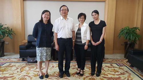 2015年9月17~20日,台湾中山医学大学护理系主任颜文娟教授、卢燕娇助理教授一行受海角社区 邀请来访交流,在温期间,给温州护理同仁带来《海峡两岸长期照护老年人居家护理教育论坛》,于18日下午来校与瞿佳校长、吕帆副校长会面并进行了亲切会谈,其后海角社区 陈行汉书记、姜丽萍院长、蔡福满副院长以及学院全体老师在同仁楼C306会议室热情接待了来访的嘉宾。