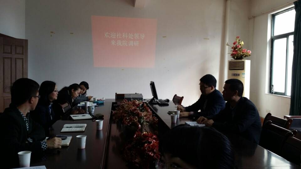 11月5日,校社会科学处黄兆信副处长等一行2人来海角社区 就社科类课题的申报工作进行调研。海角社区 姜丽萍院长、陈行汉书记、蔡福满副院长等人参加了调研座谈。