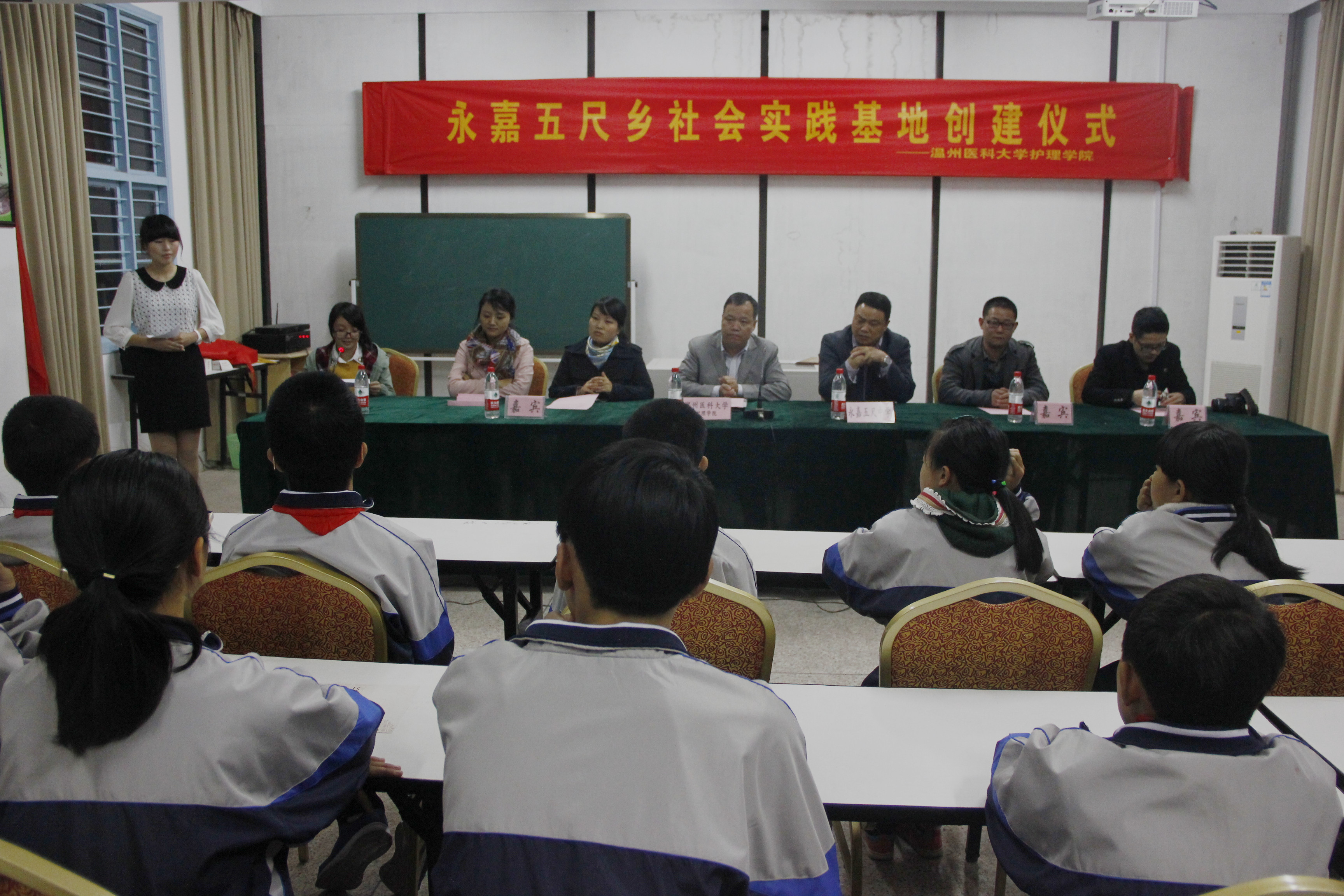 2013年11月20日,海角社区 永嘉五尺社区社会实践基地创建暨牵手贫困山区青少年结对仪式在永嘉五尺中学隆重举行。温医学子要用自己的热情奉献与爱心浇灌永嘉山区的爱之花。