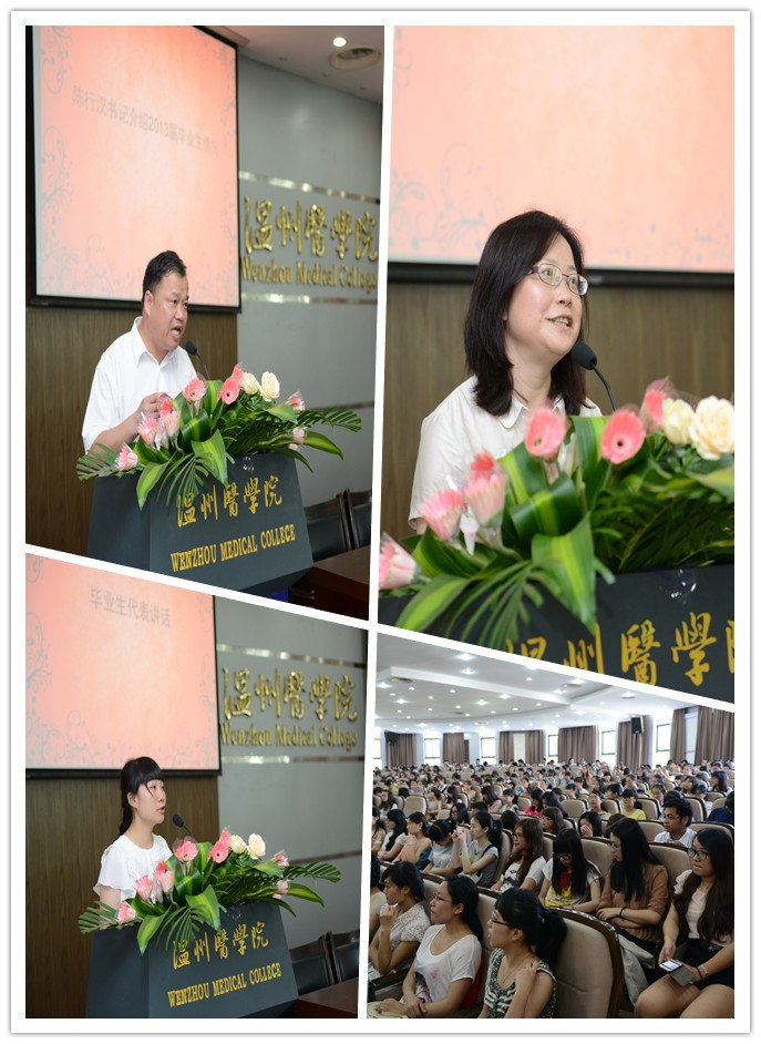 海角社区 党总支陈行汉书记、海角社区 姜丽萍院长等领导到场参加大会。陈书记就今年毕业生的总体情况做了介绍,其中截止毕业学院本科生就业率达86.25%,专科生就业率达75.52%,他表示对这些已经找到工作的同学表示热烈的祝贺,也鼓励未就业的学生不气馁、不放弃。姜院长为同学们能够顺利圆满的完成学业而感到喜悦,同时她不断的告诫学生要立足专业、踏实工作。她说:“作为一个护生,你要耐得住寂寞。不要放弃学习的机会,因为学习能够让你沉淀下来。”她鼓励年轻人要有抱负,有理想,要给自己挑战困难的勇气。成为具有睿智的知识青年。