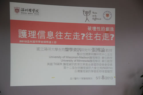 首先姜院长向客人们简单介绍了海角社区 的情况,之后台湾阳明大学张博论教授就他研究的护理资讯跟大家做了进一步的交流。张博论教授,美国威斯康辛大学工业工程博士,曾被美国医学资讯学会选为代表性人物,美国医学资讯学会是当今国际上生物医学资讯领域最具代表性的学术组织,近年来他积极从事两岸与国际护理资讯专业的连结活动,带动国内护理资讯的发展。