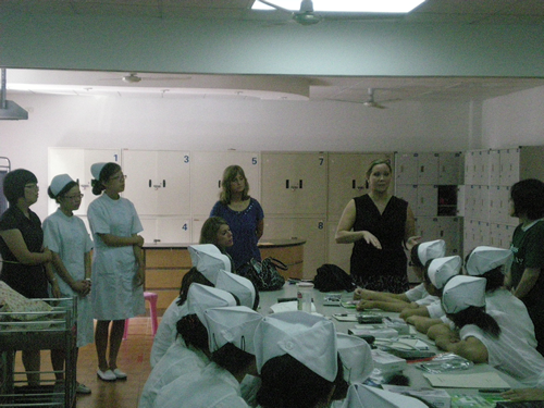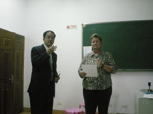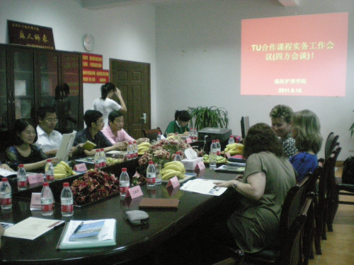 今年我校招收了首届与美国托马斯大学合作办学的护理学专业新生。在接下来的几天时间里,美国托马斯大学代表团一行与我们海角社区 相关的领导和老师就今后合作如何具体实施和课程安排进一步交换了意见和建议。Susan Otto博士向中外合作班的首届学生和中方的相关负责老师介绍了托马斯大学的发展现状以及该校的护理专业并解答了同学们的相关问题。另外也向老师和同学们阐述了中外合作护理学专业学生的培养目标和方向。Shannon Woods教授向我校和江西中医学院的老师代表们介绍了护理专业在美国的学习、从业情况以及今后的发展前景,让中方老师更清楚地了解了护理学专业在中国和美国的区别和共同点,对双方今后的进一步合作有着积极的意义。Kim Cribb博士带领随行的托马斯大学的学生走进了我校护理学专业课堂,同我校学生一起进行护理课程学习的互动,体验我校护理学专业的教学特点,并与中方的学生就两校的专业课学习、专业就业现状等进行了面对面的交流。为了欢迎托马斯代表团一行的到来,我校护理专业中外班的学生精心准备了一场文艺演出。在演出会场,还举行了首届托马斯大学中美护理教育学生友好大使授证典礼。另外,为了更深入的了解我校护理专业在临床上的应用和发展现状,托马斯代表团一行来到我校附属第二医院,参观了该院的康复科室,并且和附二院的护理部张春梅副主任及相关科室护士长就中国和美国就护理工作的开展和具体实施进行了交流。