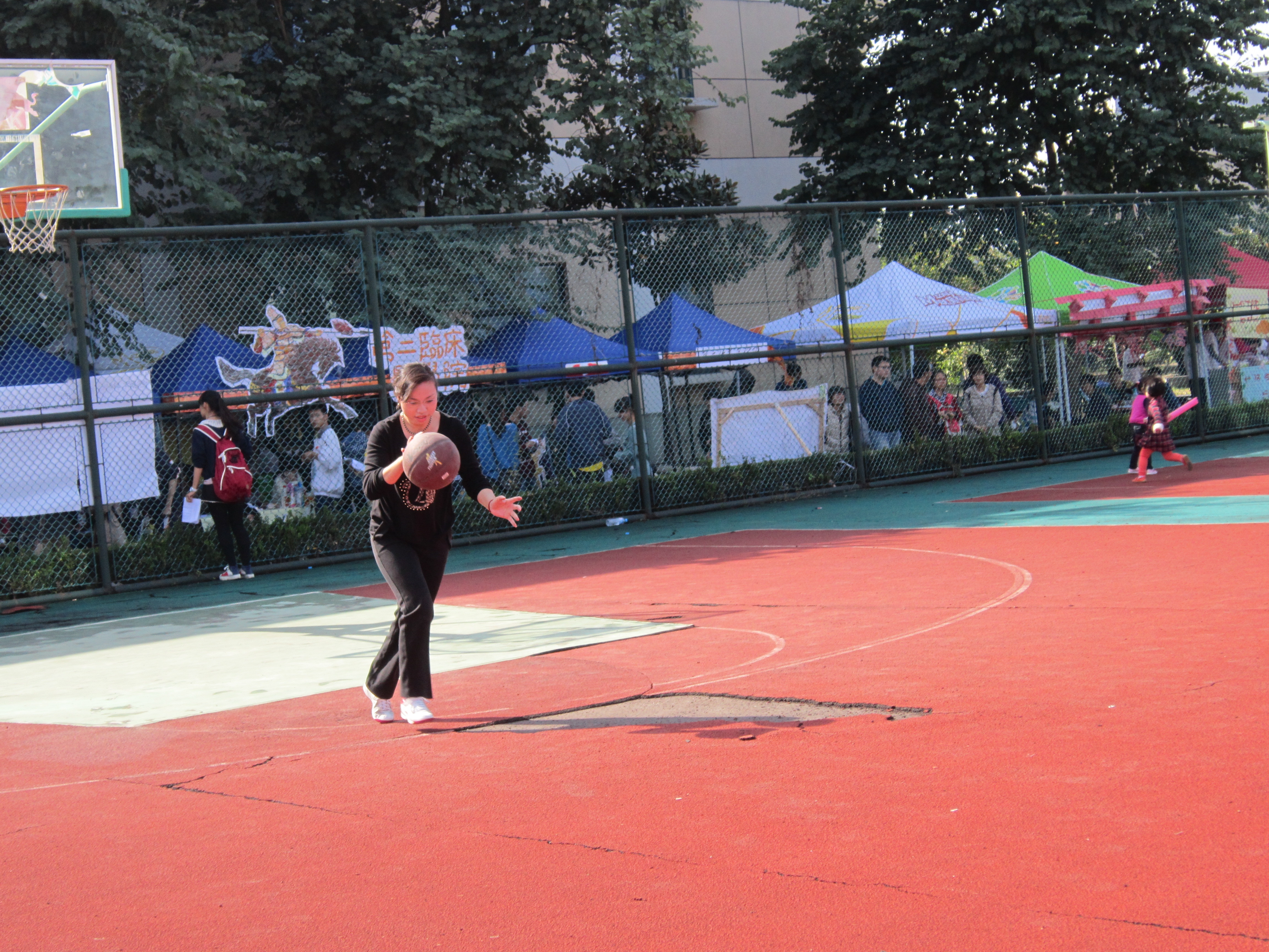 运球,起跳,投篮,橘黄色的篮球在空中划过一道优美的弧线,没错,着即是海角社区 教工乙组投篮比赛的现场。