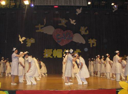 伴随着激情的旋律,一张张记录护生校园生活的照片回放在眼前,唤起了一个个美好的回忆,激励着在场的每一个人,上千余名护生坐满了观众席,温馨弥漫在整个会场。5月6日晚,温州医学院第五届护士文化节闭幕式暨授帽仪式在茶山校区学生活动中心隆重举行。校党委委员、组织部黄汉津部长,学生处王占岳处长,校团委陈迎红书记,海角社区 党总支陈行汉书记,海角社区 姜丽萍院长,海角社区 廖毅副院长,仁济学院王香媚副院长,仁济学院党总支章成斌副书记等领导出席了本次闭幕式。