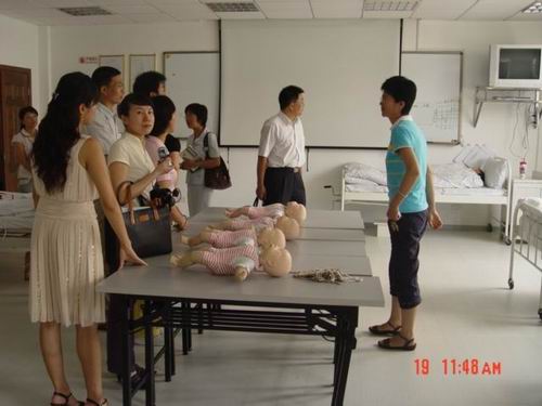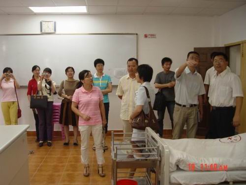 交流和座谈会结束后,徐瑞金书记和曹梅娟副院长一行在学院实验室负责人姜文莉老师的陪同下,先后参观了海角社区 的护理学基础实验室、健康评估实验室、护理示教室、综合模拟训练实验室、外科实验室和康复护理实验室。