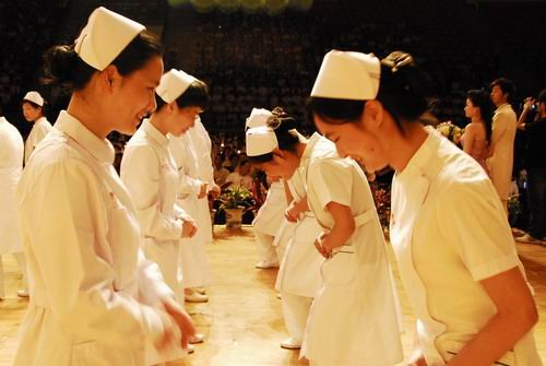 “我宣誓:我志愿献身护理专业,奉行社会主义、人道主义精神,坚持救死扶伤的信念,履行护士的职责……”5月12日晚,温州医学院所有即将下点实习的597名护生们在校大学生活动中心庄严宣誓。