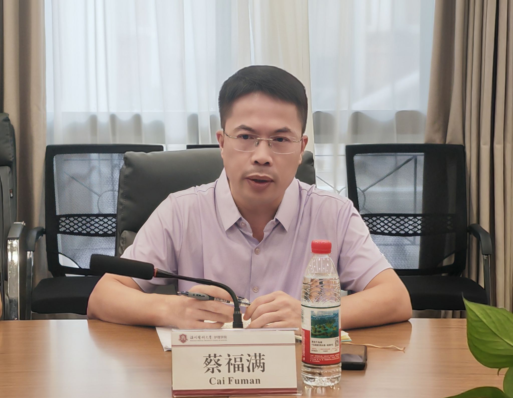 蔡福满院长作总结讲话。他对林安琪副处长的专业指导表示衷心感谢,并指出本科教育是学院发展的根基所在,全院教师应进一步提高站位,紧抓人工智能带来的发展机遇,积极融入教育教学改革新赛道。蔡院长强调,课程建设与教材开发是专业内涵建设的核心支撑,也是提升人才培养质量的重要抓手。学院将持续加强学生人工智能素养的培育,为智能时代卓越护理人才的成长注入新动能。