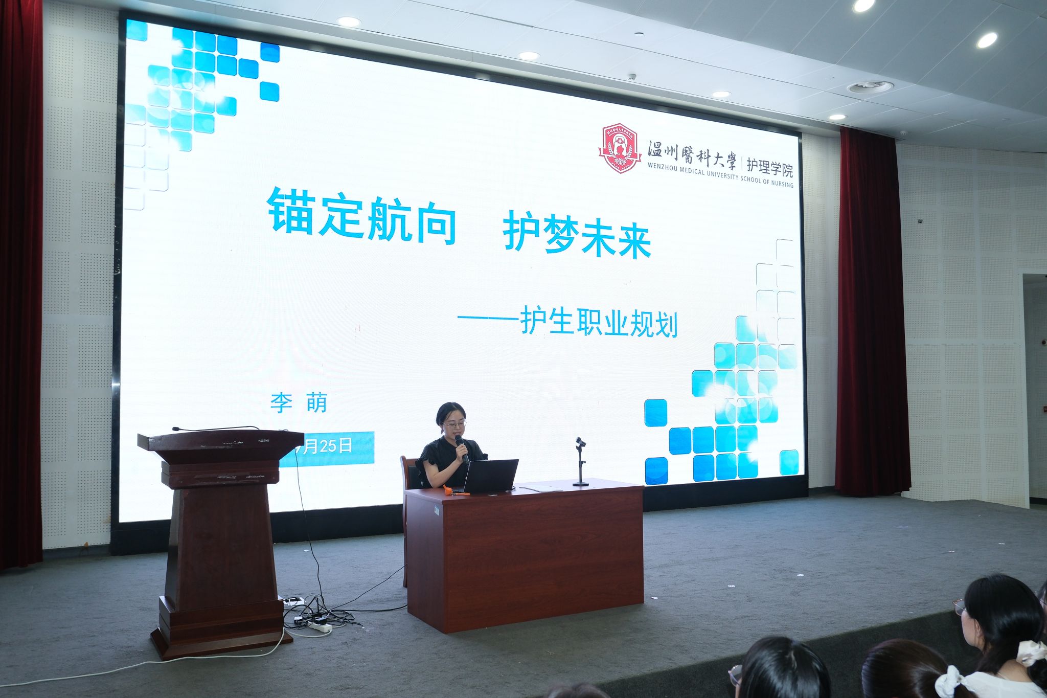 海角社区 李萌老师针对同学们普遍关心的就业大环境、护生就业路径与考研备考进行深入分享。她既鼓励大家把握大学成长机遇、提升综合能力、科学规划人生,也倡导同学们将职业理想与祖国社会发展相结合,在奉献中实现青春价值。
